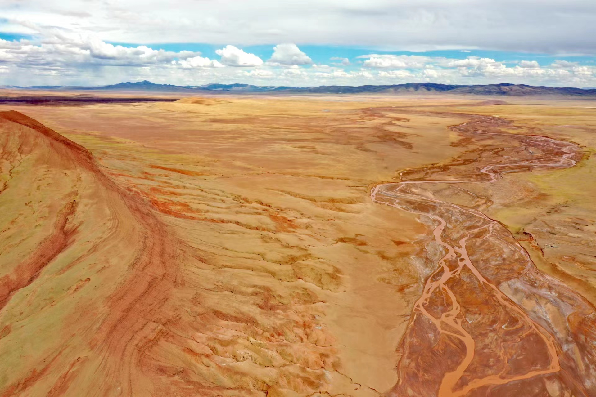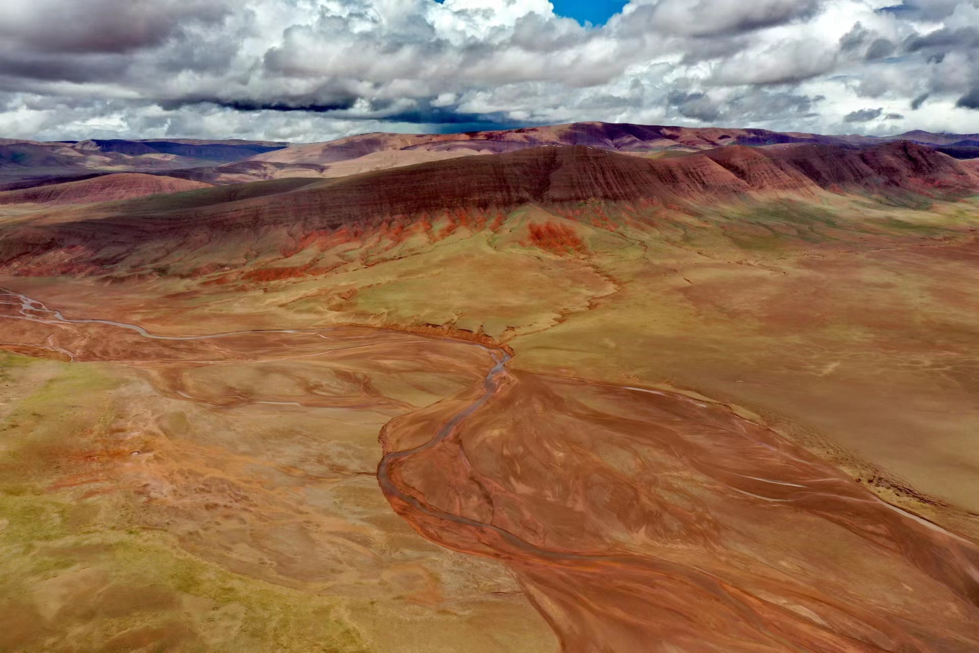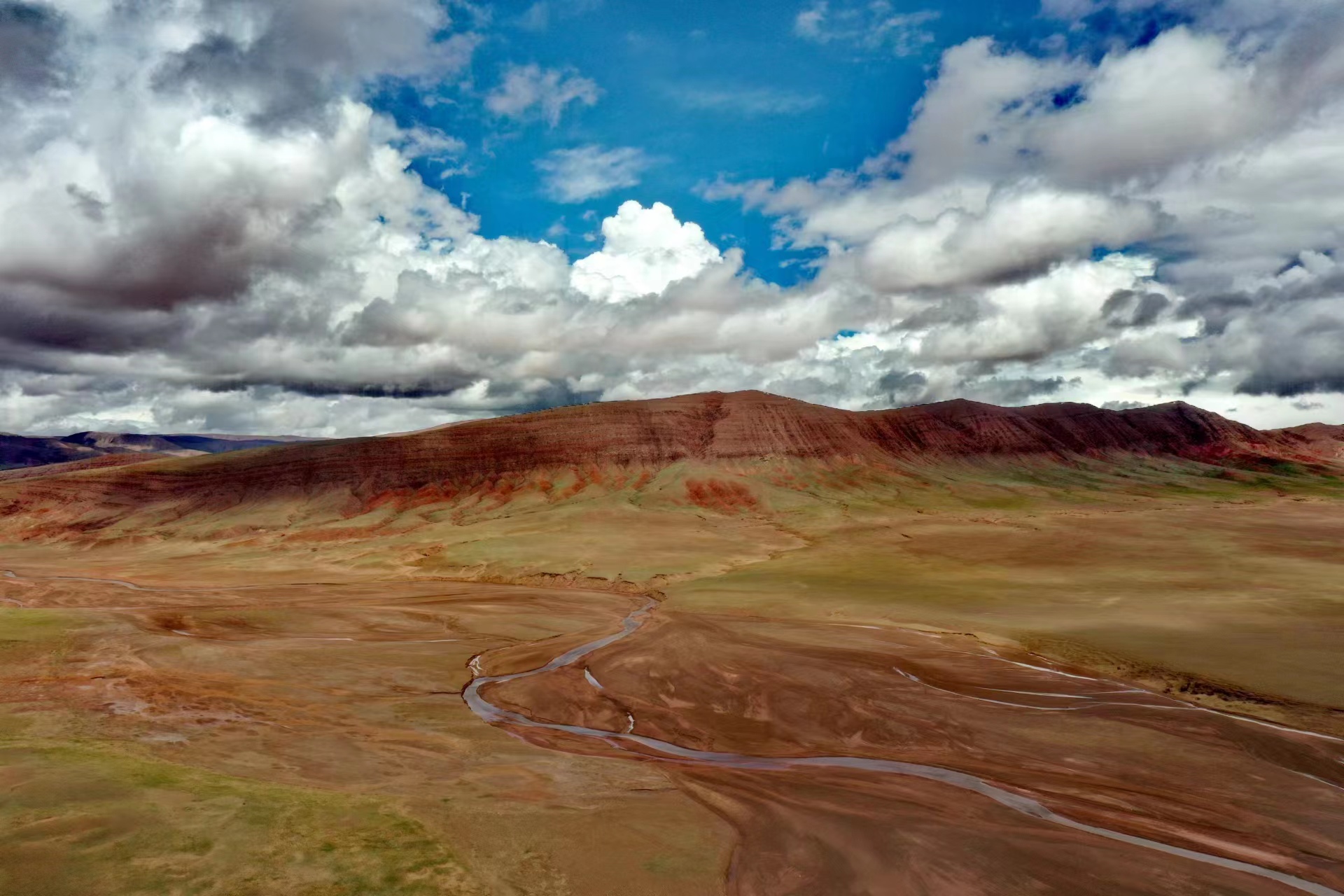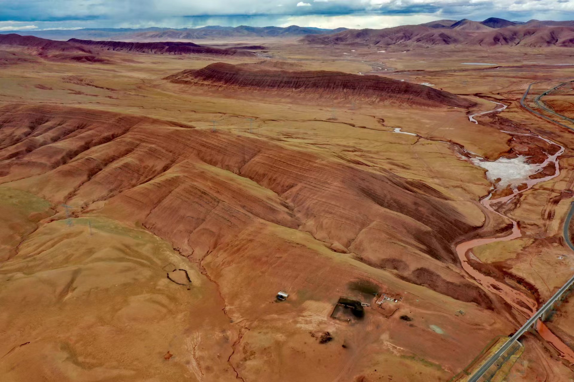 人民网西宁6月23日电 (顾斐菲)近日,中国地质大学(武汉)长江科考先遣队员张永一行进行综合科学考察时,在青藏公路日阿尺曲一带发现一条红色山脉,是青藏高原109国道沿线一处壮观的地质遗迹。该山脉由晚白垩纪钙质胶结的粉、细砂岩与古近纪紫红色、砖红色复成份砾岩所组成,呈近东西走向,两坡不对称,南陡北缓,地层剖面出露清楚。