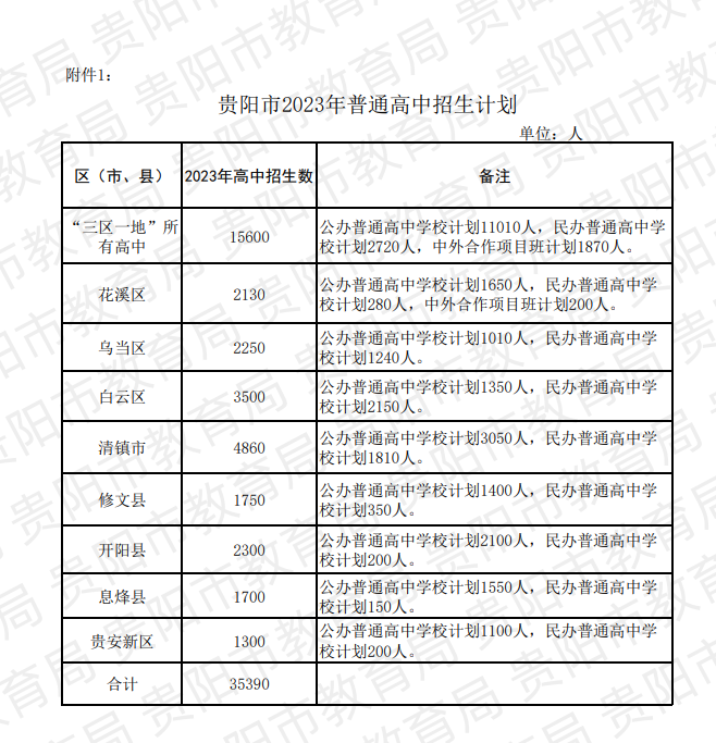 按照省级示范性普通高中和部分一般普通高中面向贵阳市招生计划的50%下达配额生计划。