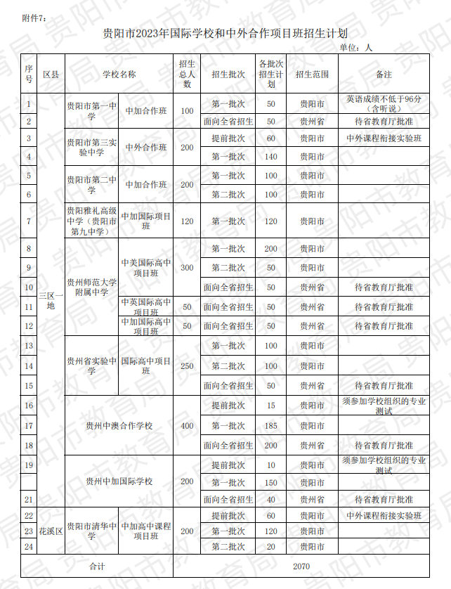 贵阳雅礼高级中学(贵阳市第九中学)和长郡贵阳高级中学(贵阳市民族中学)统招生面向全市招生。