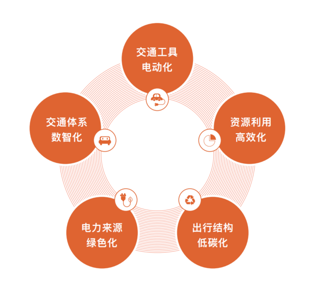 交通运输行业作为能源消耗及碳排放重要领域,当前碳排放量在全国碳排放量中占比超过10%,其中道路交通占比约80%,且仍不断增长。《报告》指出,交通运输结构、汽车制造水平、出行习惯以及电力能源结构等因素都同交通行业的排放强度和排放总量密切相关。以交通低碳转型为牵引,可以协同推进产业全链条各要素的迭代升级。