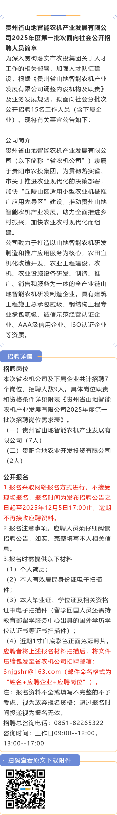 【国企】贵州省山地智能农机产业发展有限公司招聘!年薪7-12万元!中专起报!