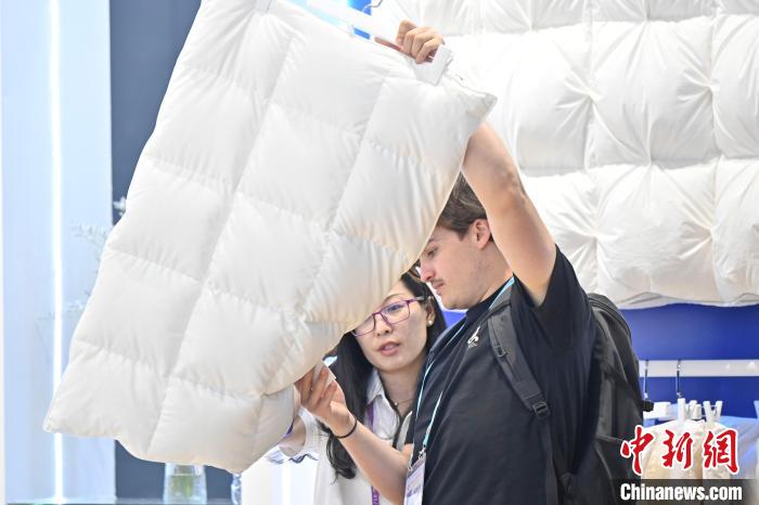 “本届广交会上最受采购商关注的就是这款丝菌草面料,绿色环保,抗菌性强,适合用作孕婴童用品、家用纺织品。今年广交会境外采购商数量同比增加,特别是中东地区的采购商很多。”大染坊销售经理黄倩茹接受中新社采访时说,凭借高科技、高性价比和时尚设计,该公司产品赢得国际市场的认可。2025年第一季度,大染坊产品海外销售额达5000万元人民币。