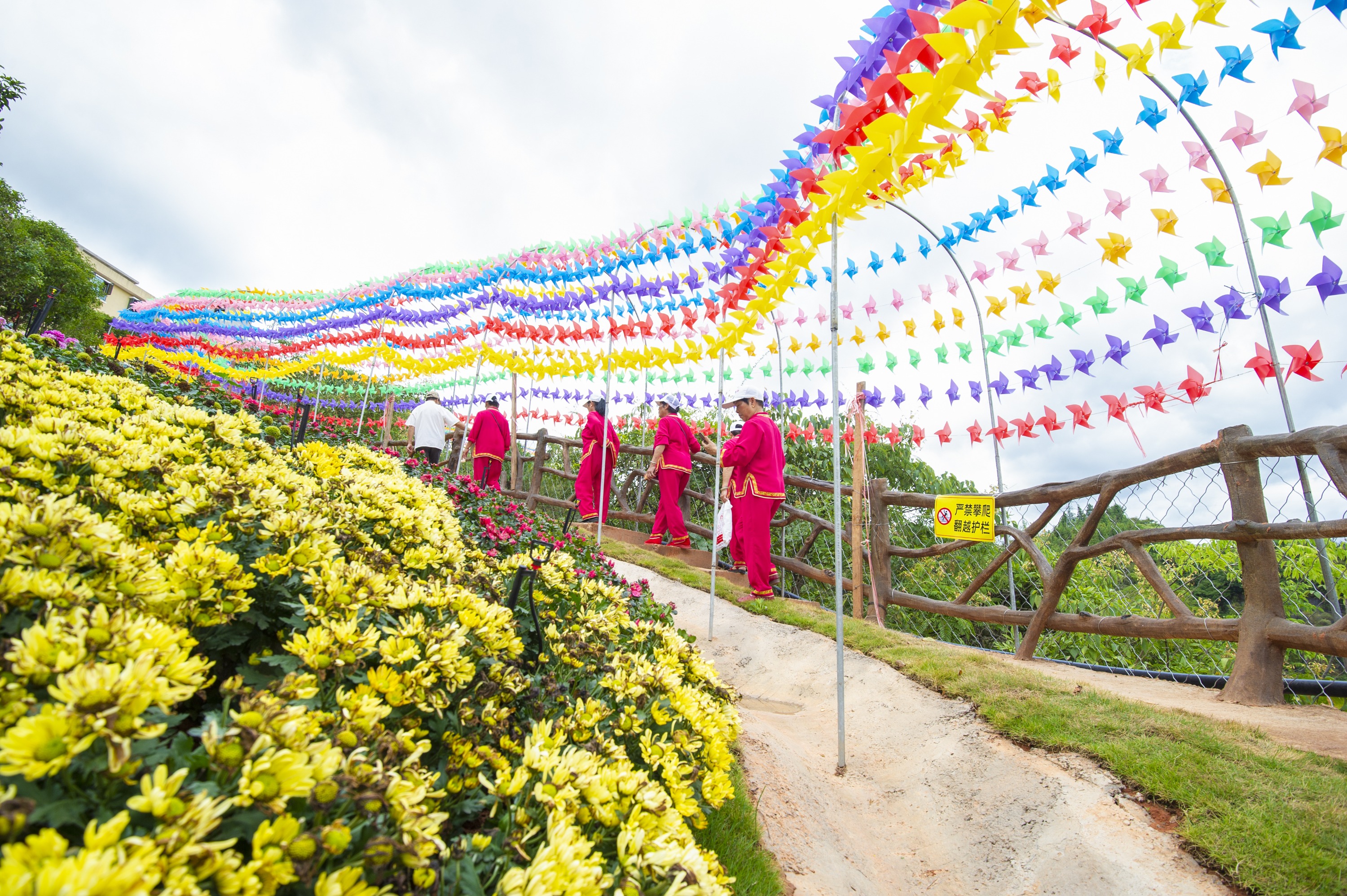在旅游观光区,中心打造了“风车长廊”、“彩虹滑道”、“特色花海”等诸多网红打卡点,满足了游客们的视觉所需,让游客畅享良好的生态休闲和健身活动空间。