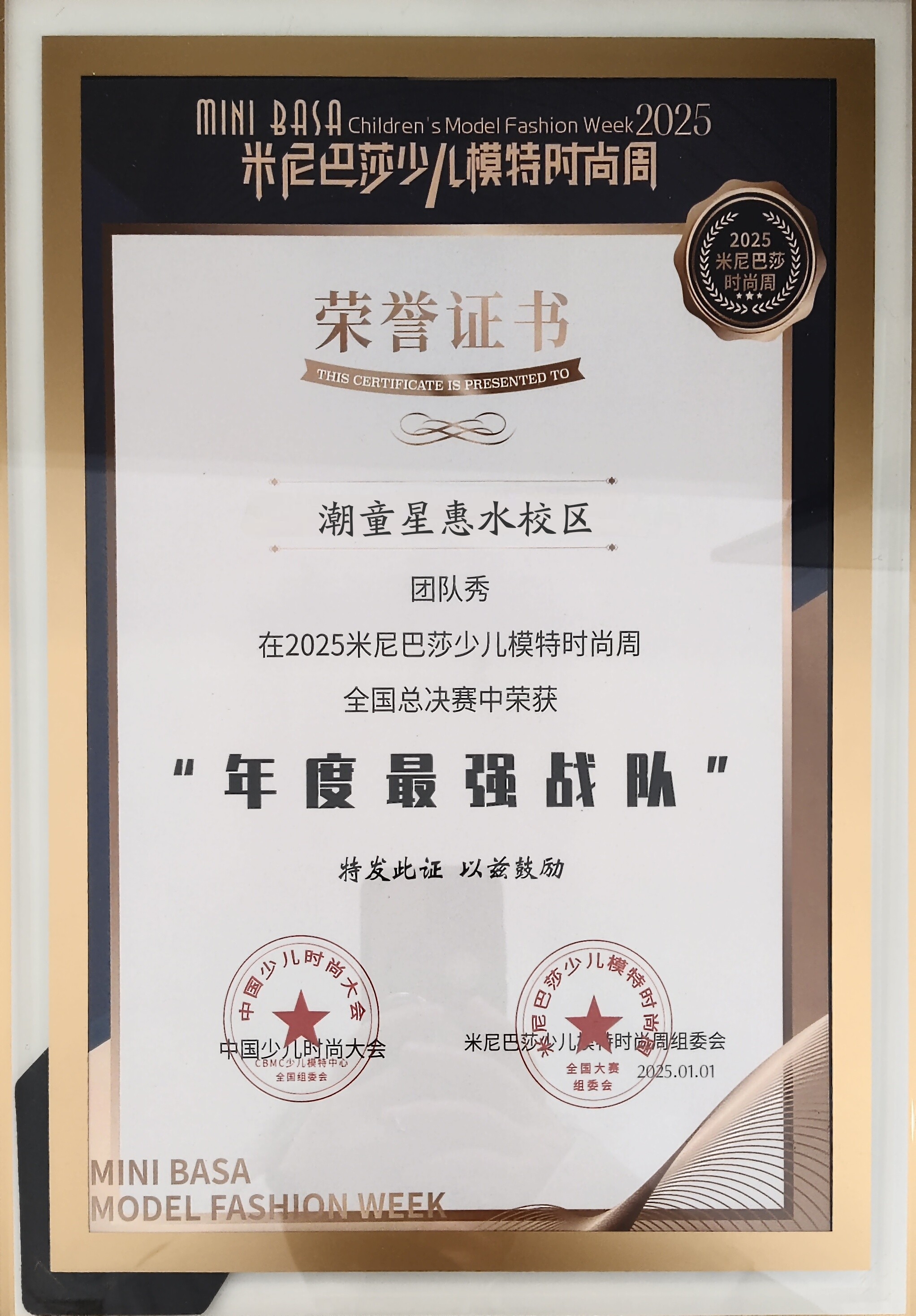 潮童星惠水校区获奖经历:在2023南京国际时尚周中,获优秀组织机构奖;在男生女生·第九届潮童星国际少儿模特大赛全球总决赛中,获得未来超模荣誉;在2025米尼巴莎少儿模特时尚周全国总决赛中,获得年度最强战队奖;2023-2025参加很多各类其他演出活动。