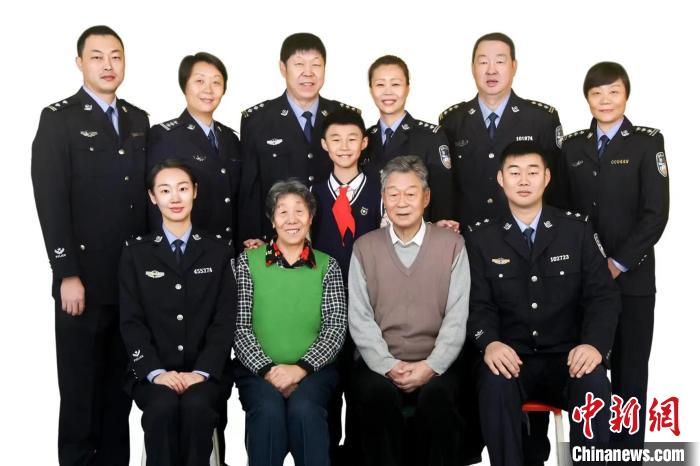 张淇翔一家三代9名警察合照。 受访者供图