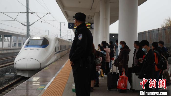 张淇翔在站台接车并维护旅客乘降秩序。 冉景嘉 摄