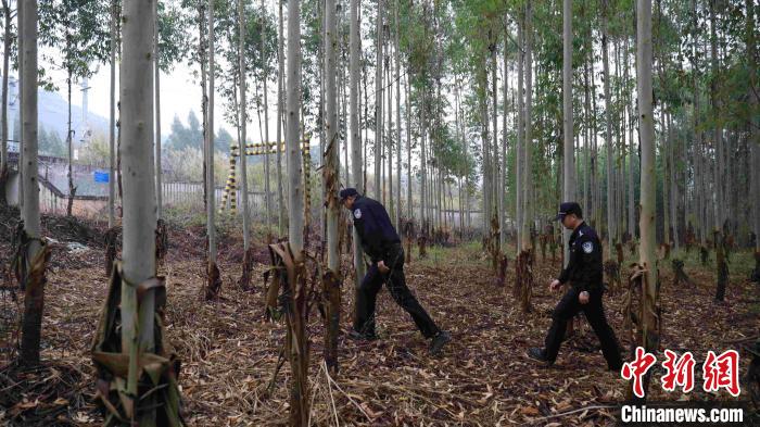 张淇翔和同事步行通过密林到高铁线路开展巡防。 冉景嘉 摄