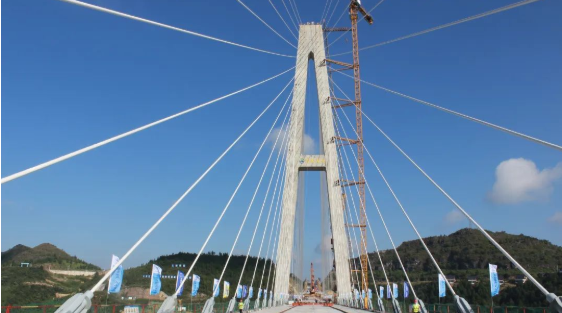 ▲8月19日,位于贵州省龙里县境内的龙里河大桥(原朵花特大桥)正式合龙,意味着龙里鸡场至朵花道路工程离正式通车更进一步,届时贵阳至龙里大草原的车程将由原来的90分钟缩短到30分钟。龙里河大桥主跨径528米,全长1260米,是世界第一高山峡谷景观斜拉桥。