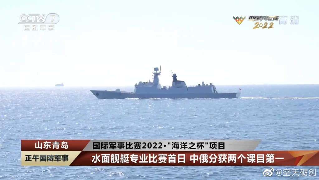 ▲8月17日,“国际军事比赛-2022”“海洋之杯”水面舰艇专业比赛首日,中方参赛舰临沂舰获得舰炮防空反导科目第一名!