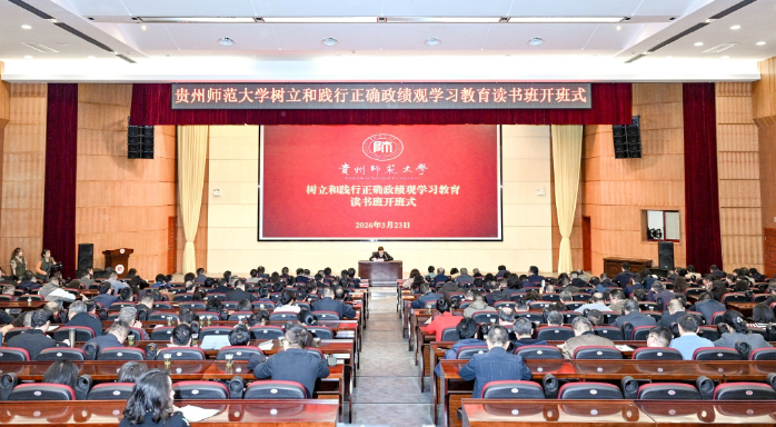 树立和践行正确政绩观学习教育是今年党的建设的重点任务,更是高校坚守立德树人根本使命、推动内涵式发展的必由之路。根据党中央、省委及省委教育工委部署要求,3月23日至24日,贵州师范大学举办树立和践行正确政绩观学习教育读书班暨理论学习中心组专题集中学习研讨会,组织校领导、处级干部率先垂范、深学细研,充分发挥以上率下、示范引领作用,推动学习教育深度融入办学治校、教书育人全过程,切实把学习成果转化为驱动学校高质量发展的强劲动能。