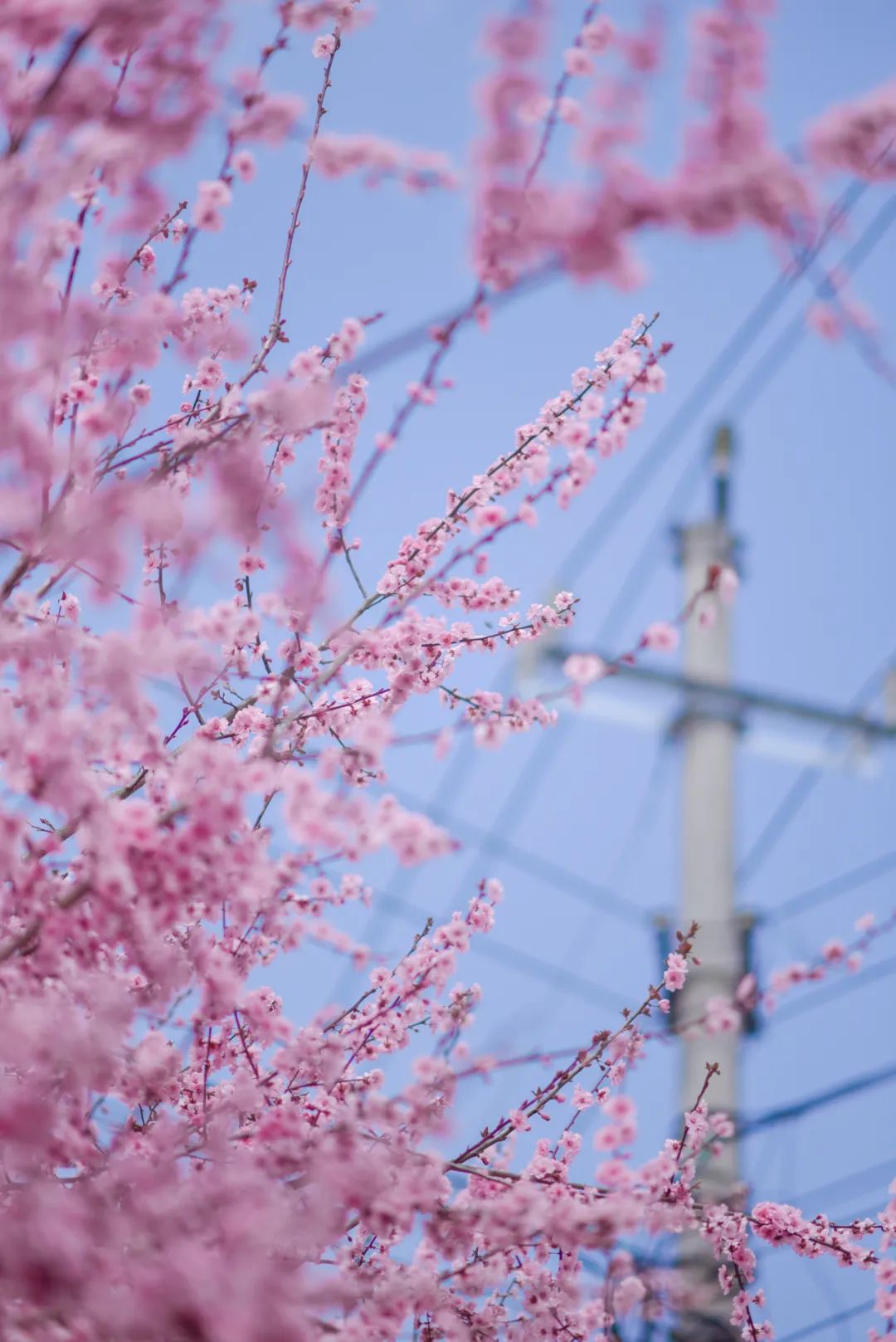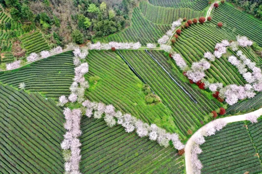 这一小片樱花林会比茶山上的樱花开得早些时日。蓝天下,微风阵阵,花瓣轻轻飘落,为到来的春日起舞。