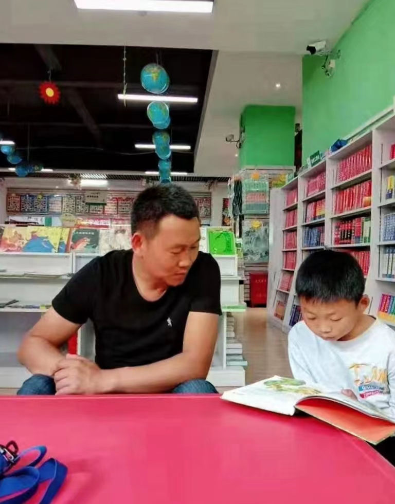 何金全的两个孩子都喜欢看书,特别是科学类的书籍。以前,何金全总是把买课外书的任务包办,买一些他认为好的、对孩子成长有教育意义的书籍。长此以往,家里的书籍类别单一、覆盖面不大,以至于孩子感兴趣的书很少。孩子们对喜欢的书会认真阅读,不喜欢的便走马观花阅读,非常被动的囫囵吞枣般吸收。何金全意识到这一点后,每逢周末便有意识的带着孩子去县城或者附近的图书市场逛一逛,让孩子们挑选自己喜欢的图书。在家里,何金全也时常会和孩子们一起阅读,一起探讨、争论有趣的话题,鼓励他们从书中寻找答案。通过长时间、预设教育环境的润物无声、潜移默化的影响,孩子们爱上了看书,身影时常出现在书店,品尝着读书的快乐。现在,读书已经成为了他们家庭生活的一部分,每当看着孩子皱着眉头,目不转睛地盯着书本,何金全甚感欣慰。