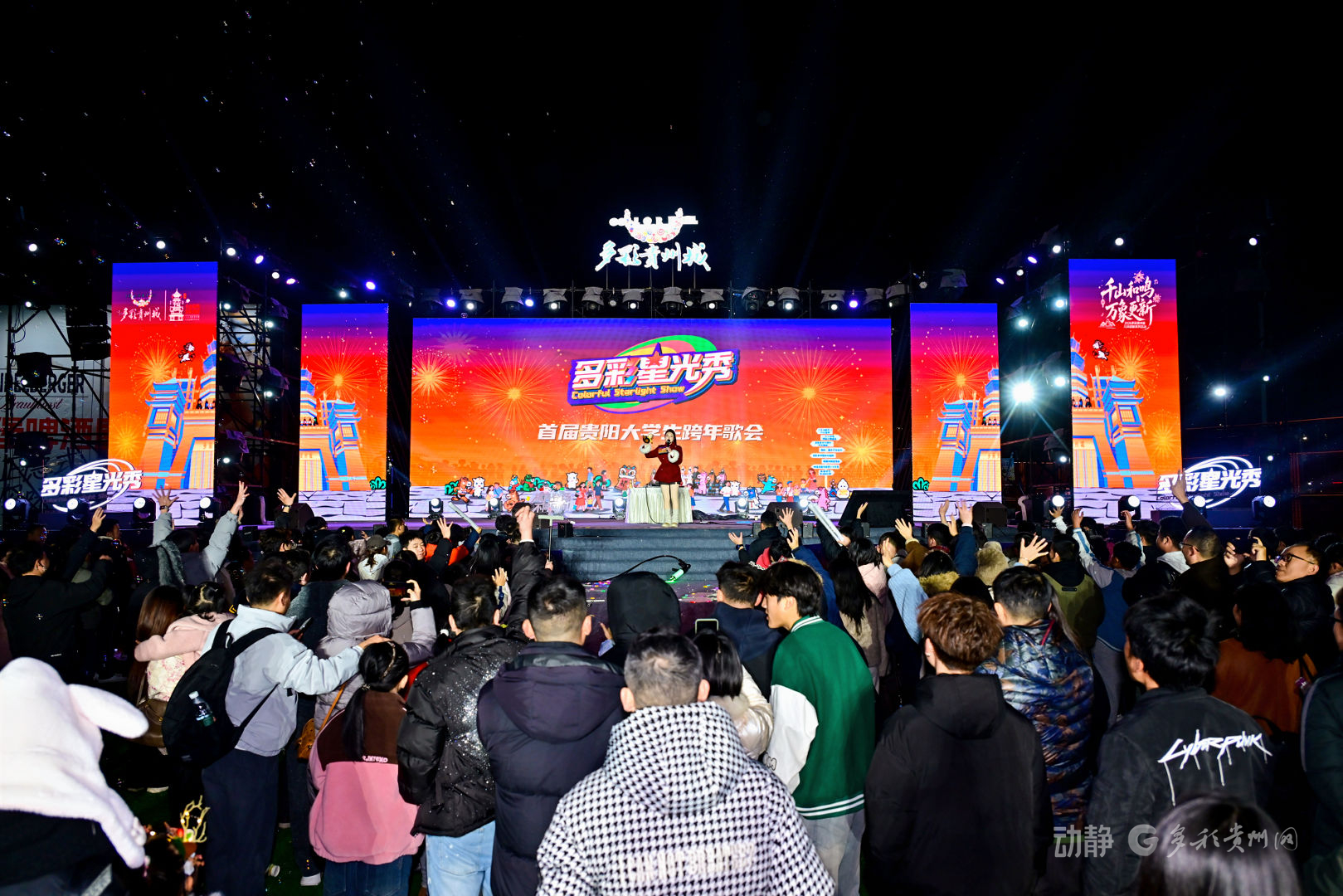 当晚,“多彩星光秀·大学生跨年歌会”开启了跨年夜的热闹氛围。数十组来自贵州各高校的青年歌手与乐队轮番登台,表演献唱30多首摇滚、流行、说唱等风格各异的曲目,为现场观众带来活力四射的音乐派对。