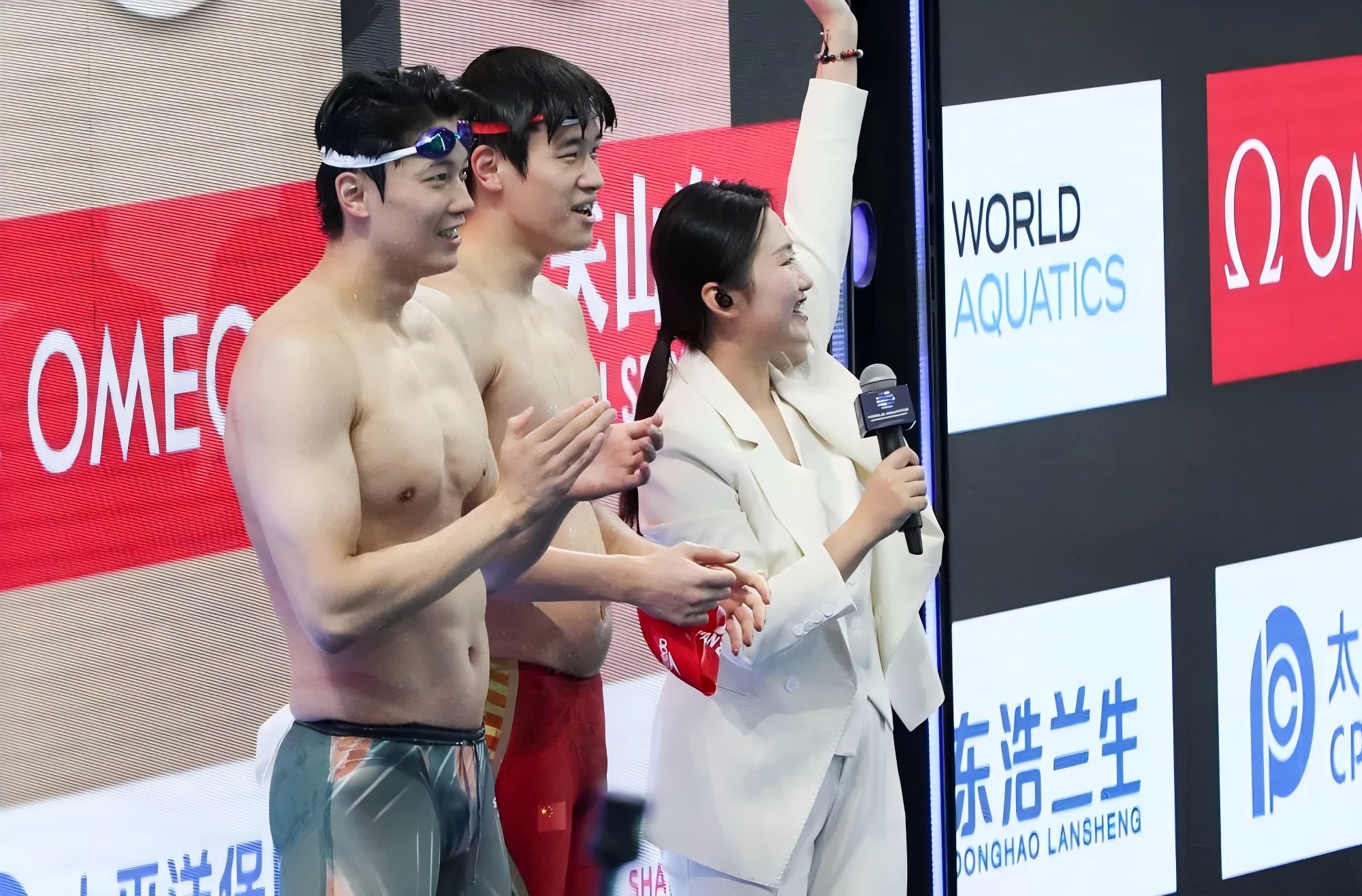 竞争激烈的男子100米混合泳“强强对话”中,东京奥运会冠军汪顺名列第四名并改写短池亚洲纪录,潘展乐获得第六名,巴黎奥运会“四金王”、法国选手马尔尚以50秒65的成绩夺冠。