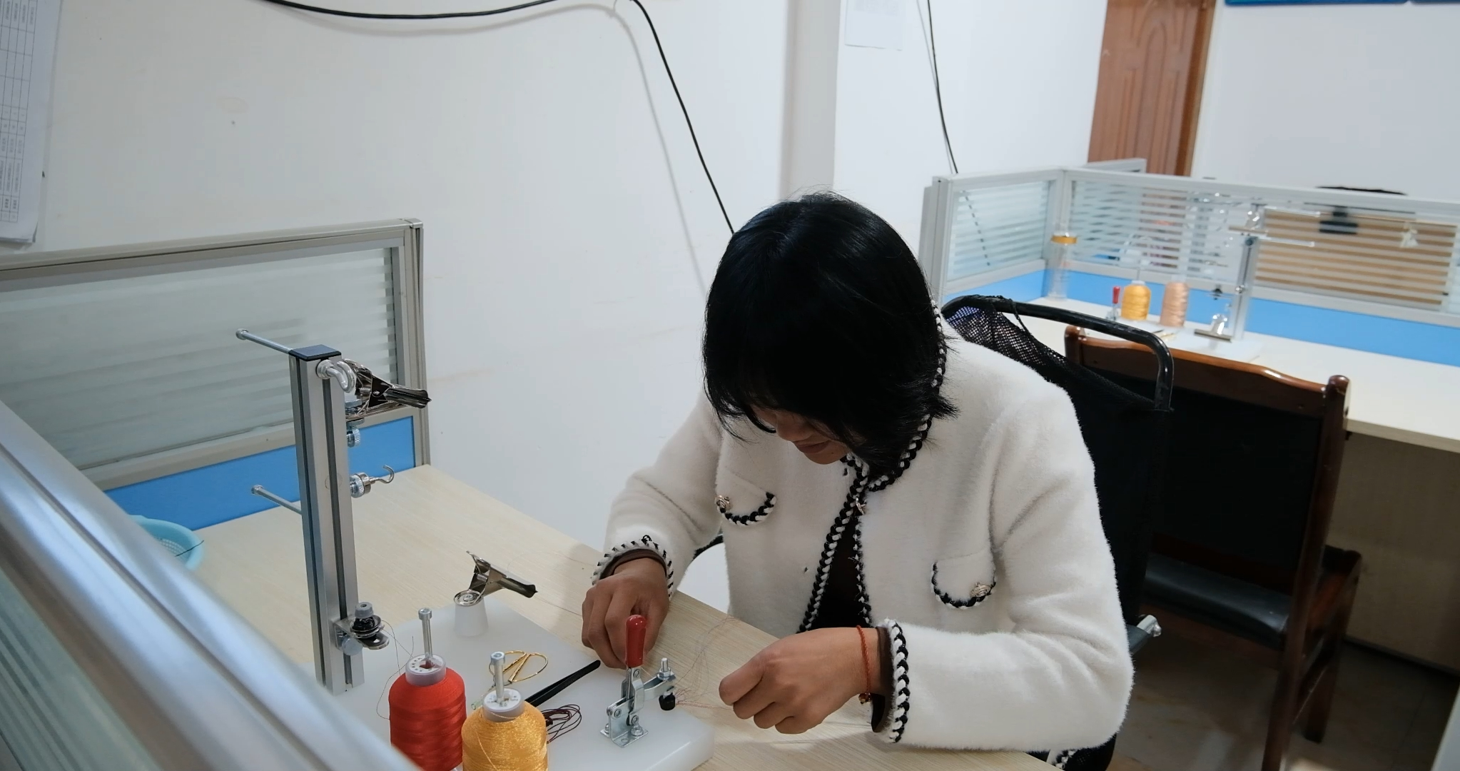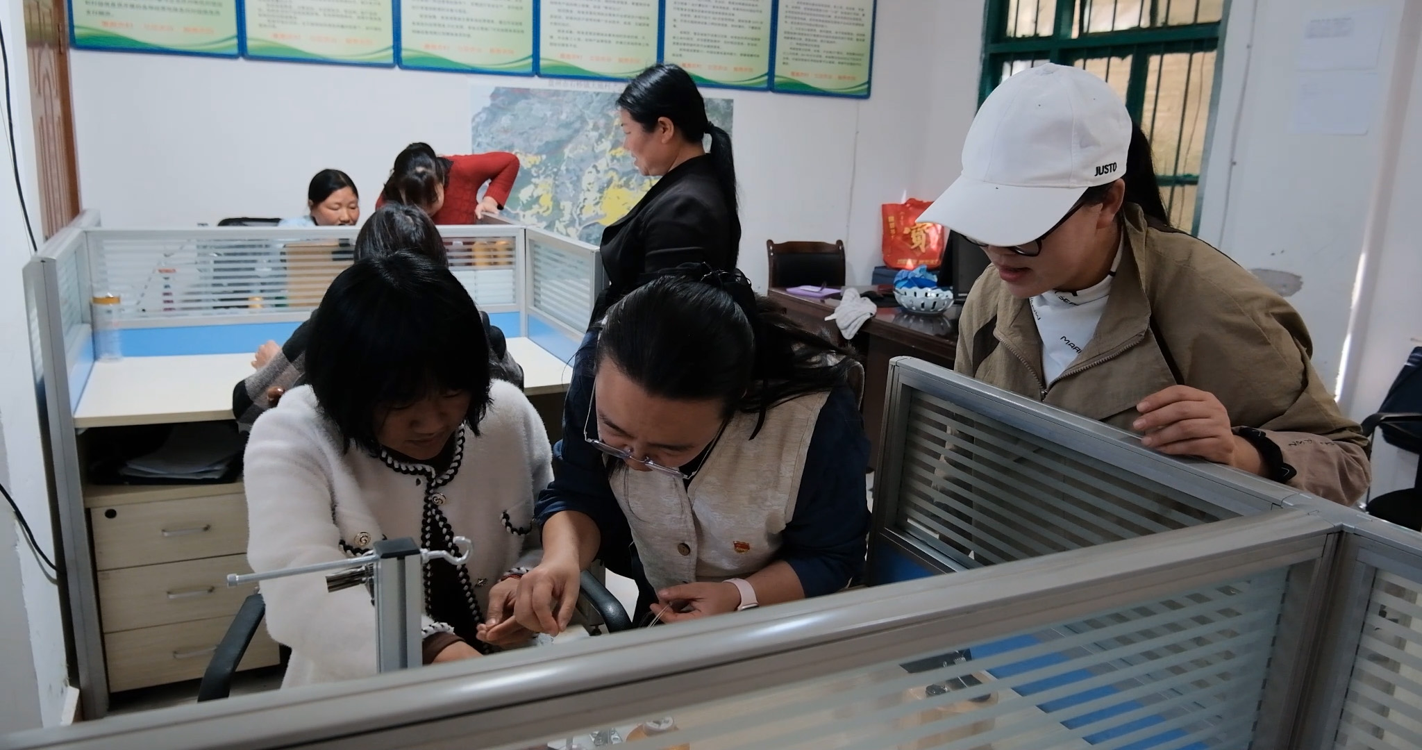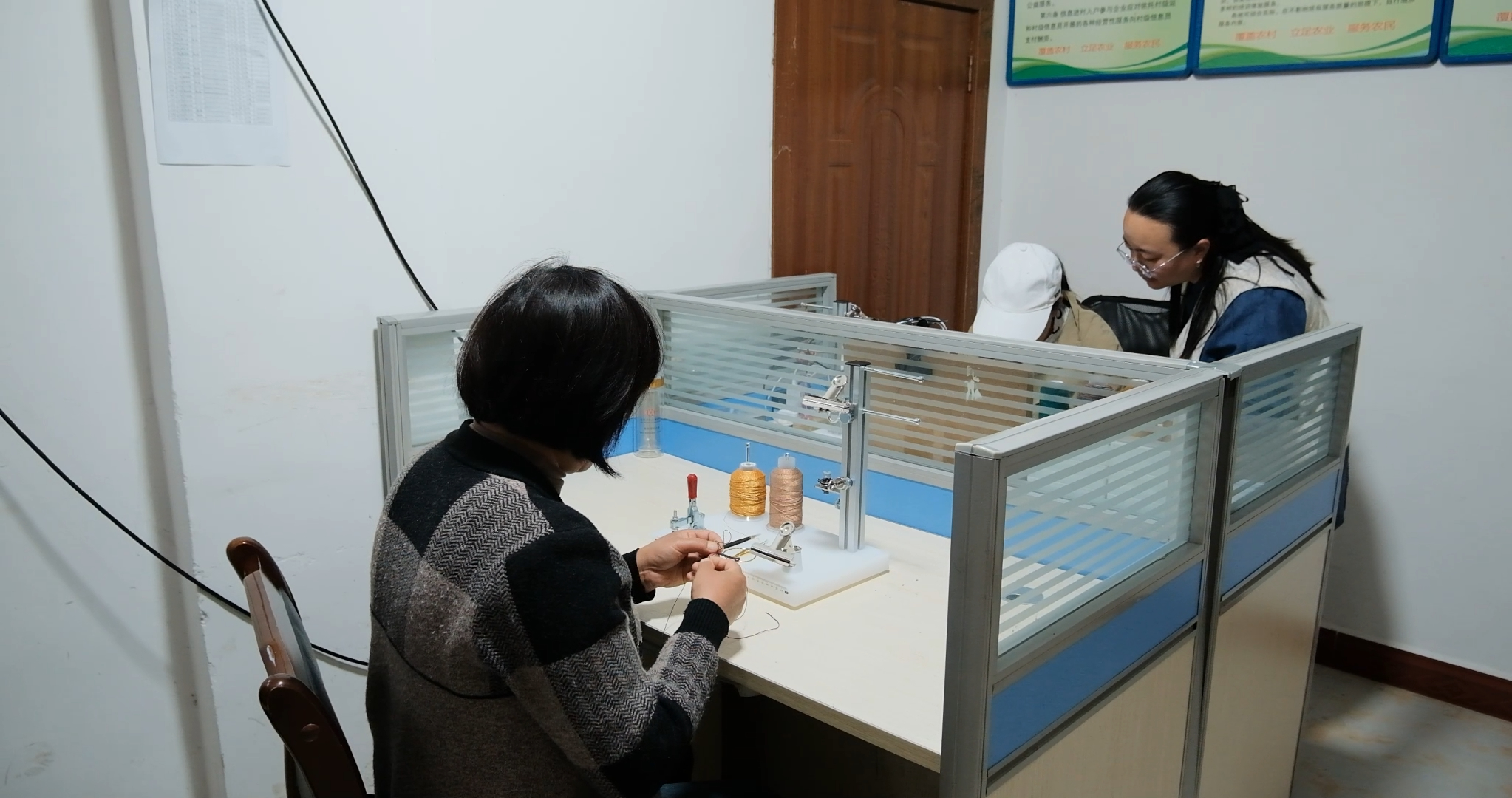 由于自己喜欢手工,也对手工市场有一些了解,今年2月,盘州市石桥镇大地村驻村第一书记张思雨自己掏钱在村委办公室搭起了一间手工室,并担任手工老师,召集留守妇女们学习手工。