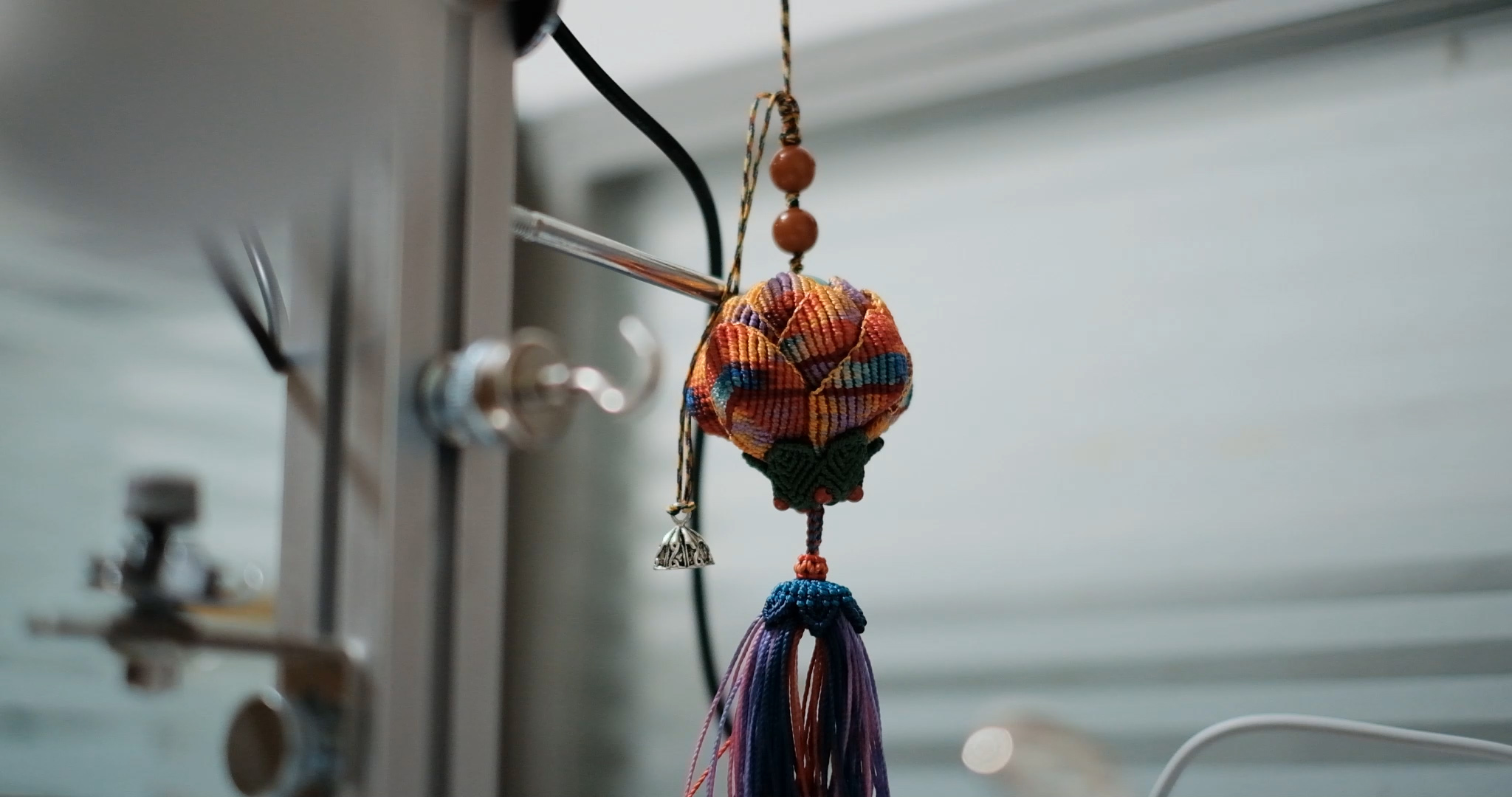 目前,大地村已经有10多名留守妇女成为了这个手工班的学员,主要是学习传统手工中的绳结手工,为吊坠、摆件、饰品等小物件生产半成品。彩线翻飞中,已有30多件半成品离开小小的工作台,走向指尖经济,为她们带来增收的希望。