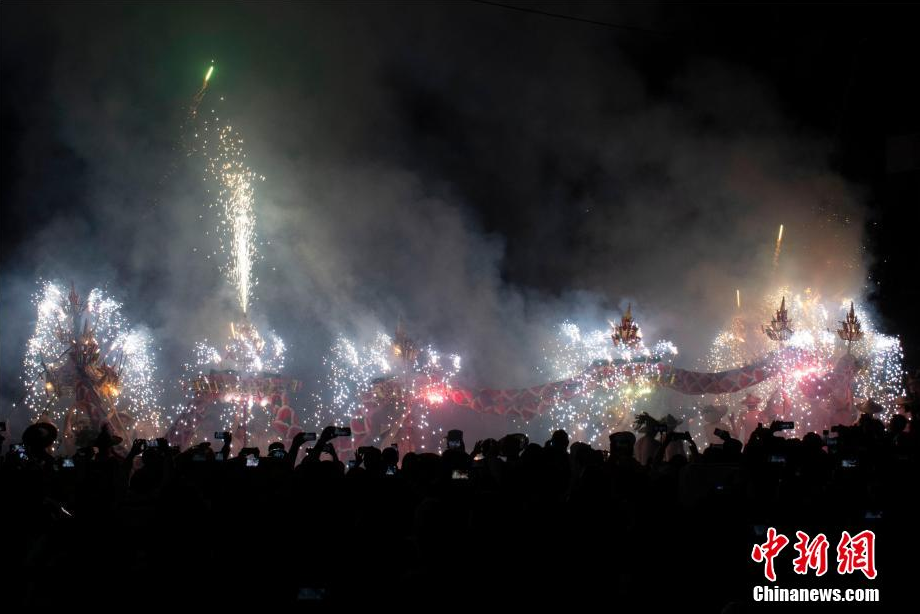 国家级非遗项目乔林烟花火龙在广东揭阳上演