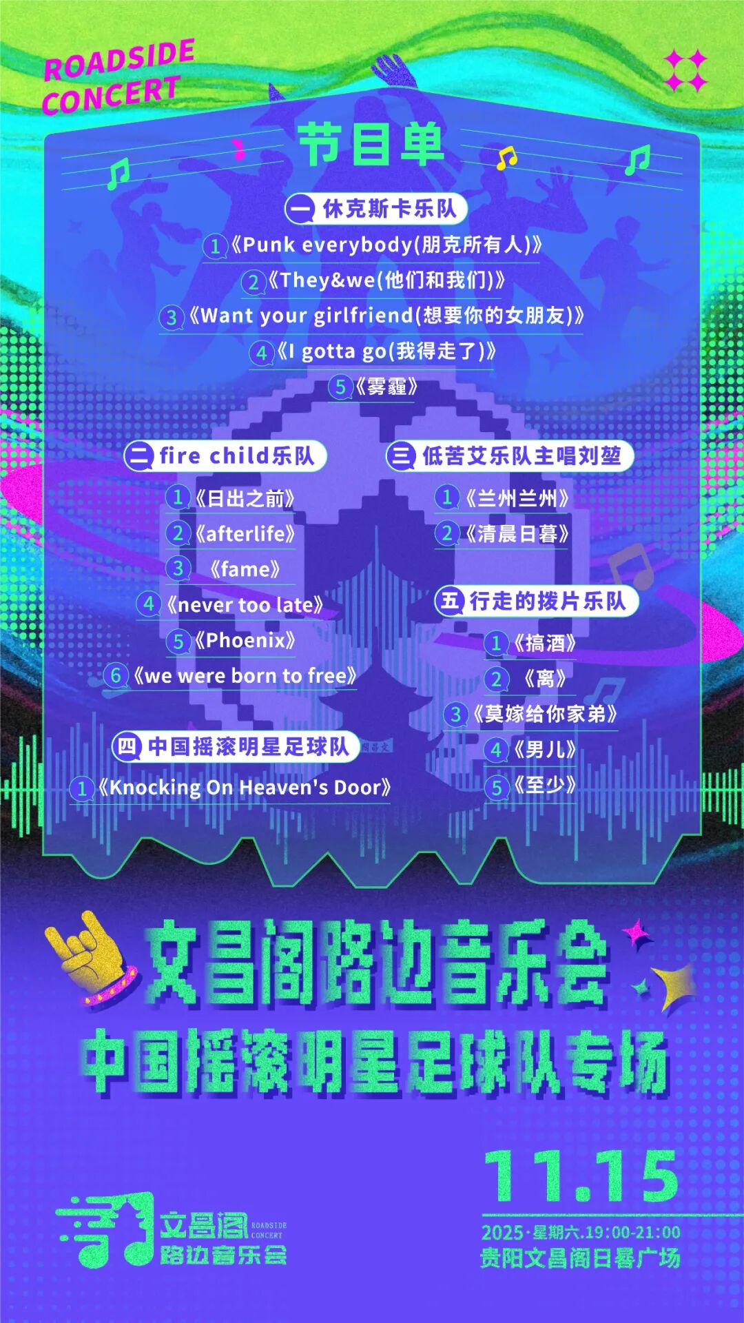 周六晚贵阳文昌阁,中国摇滚明星足球队集结!路边音乐会躁起