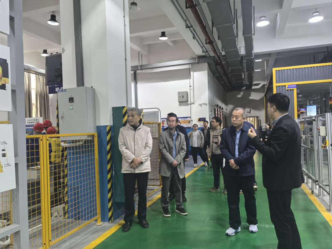 在该院副校长邱福明的陪同下,调研组一行率先参观考察了该院柳州螺蛳粉产业学院、智能制造研究院、工业机器人训练中心、东风柳汽商用车基地。现场观摩了课程实施与实训操作环节,并就实践教学体系构建、实训设备配置与管理、产教融合实施路径等具体问题,与在场负责人及技术人员进行了现场交流与探讨。