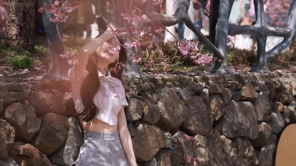 走进杭州樱花园,漫山遍野的早樱如云似霞,游客漫步花间、定格春光,尽享惬意时光。