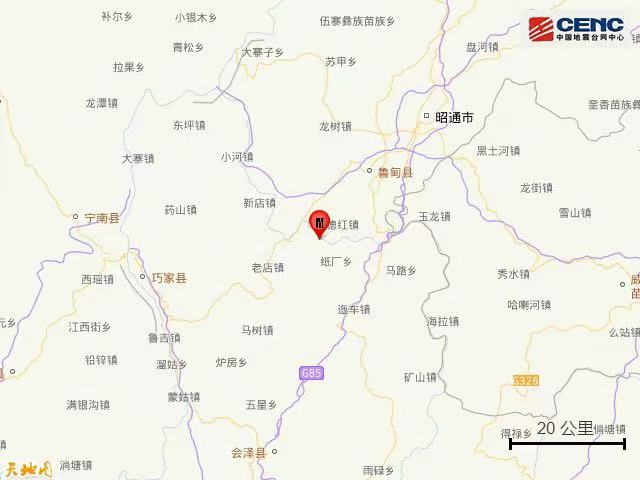 据曲靖市、昭通市地震部门报告,初步统计,会泽县纸厂乡和迤车乡、鲁甸县文屏镇和火德红乡、巧家县苞谷垴乡、昭阳区凤凰街道等地震感强烈,曲靖市双龙街道等地有明显震感。暂未收到人员伤亡和房屋破坏情况报告。