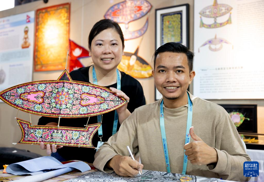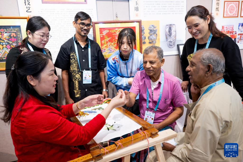 12月9日,来自斯里兰卡的艺人在体验漳绣技艺。新华社记者 魏培全 摄