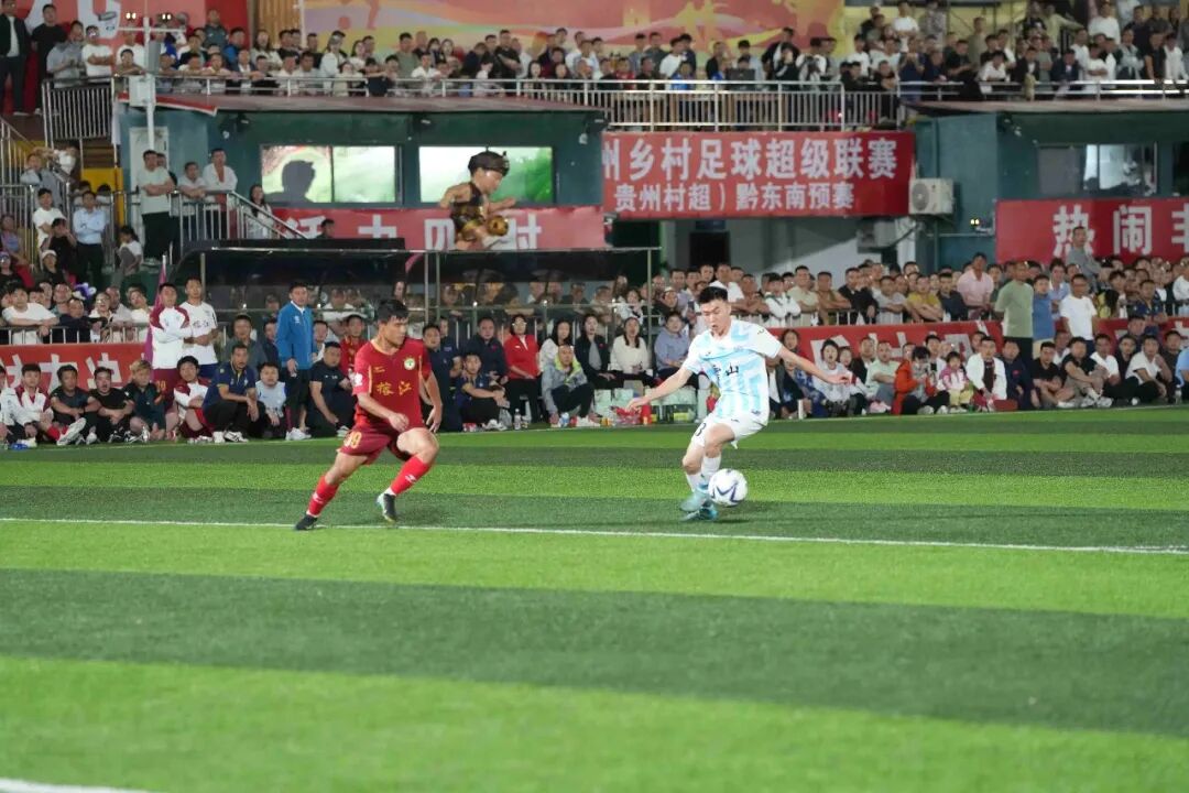 4月25日,贵州“村超”2025—2026赛季黔东南决赛在榕江县“村超”球场激情上演。本次比赛的冠军争夺战在榕江队与雷山队之间打响,剑河队和黄平队争夺第三名,球员们奋勇拼搏、全力冲刺,为荣誉展开激烈较量。