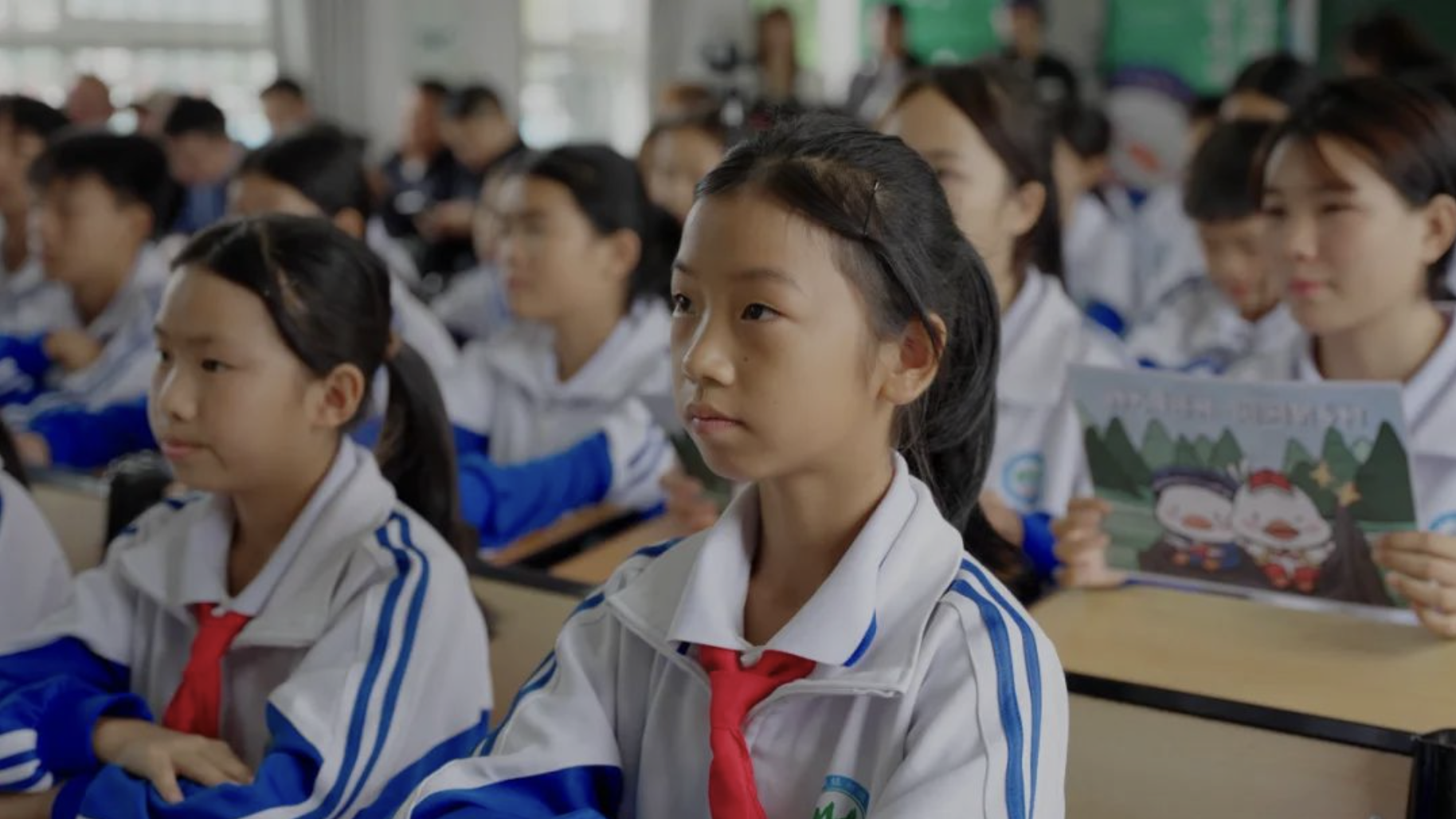 随后,以双地联动、视频和现场相结合形式开展了“共读经典,生生不息”共读活动,百名师生饱含深情地共读中国当代著名女诗人阿紫创作的《读中国》。师生们在铿锵有力的诵读声中抒发爱国情怀,展现了昂扬的精神风貌和积极向上的青春活力。