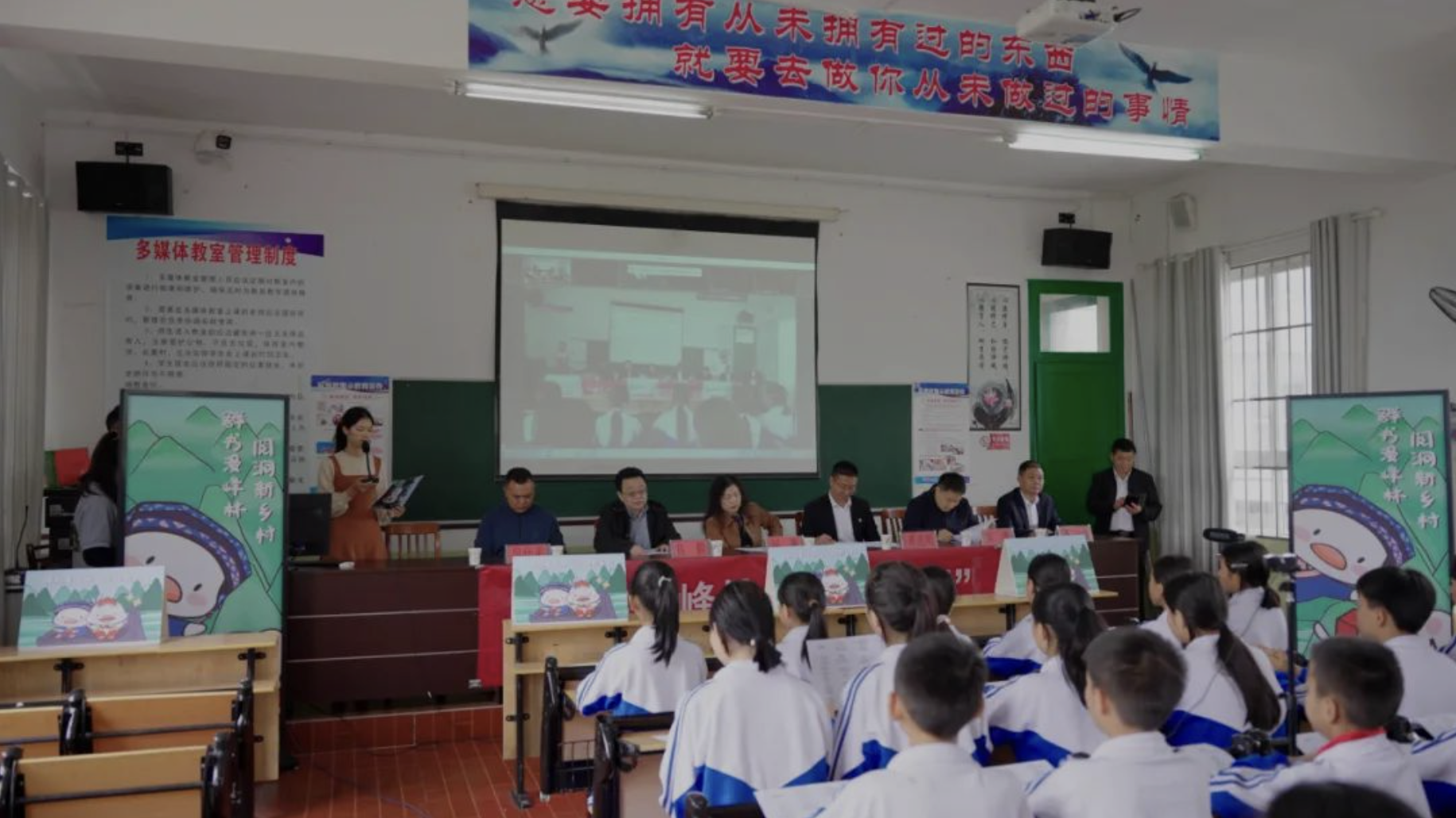 近日,贵州大学图书馆赴安龙县万峰湖镇,携手贵州省黔西南州安龙县万峰湖镇人民政府、贵阳市交通委员会,在万峰湖镇初级中学,开展了以“群书漫峰林•阅涧新乡村”为主题的“多彩贵州·书香高原”乡村耕读系列活动。