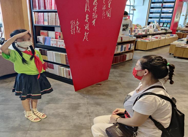 活动现场,少先队员认真阅读红色书籍,从书中学习红色文化知识,了解党的百年光辉历程。随后,少先队员们用自己的方式向店内读者讲述红色故事,尽管年纪尚小,却将一个个革命英雄故事说得令人动容,大家在讲述红色故事的过程中,厚植了对党、对祖国、对社会主义的热爱之情。