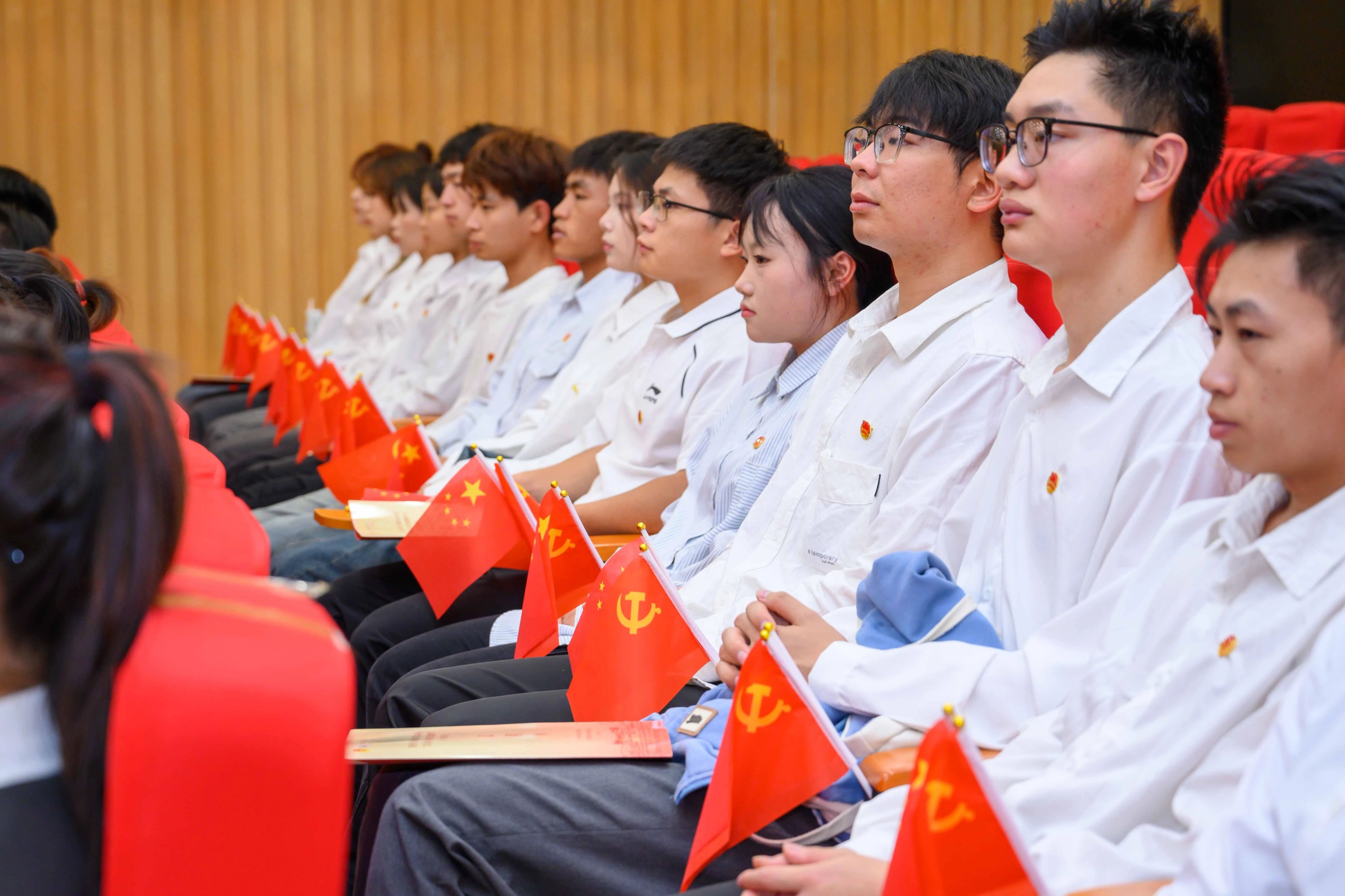 大会现场,贵州工业职业技术学院党委班子成员逐一为新团员代表佩戴团徽。在团委副书记尹丽的带领下,全体新团员代表,面向团旗,庄严宣誓,誓言掷地有声,彰显着新时代青年奋发向上的精神面貌和建功新时代的昂扬斗志。