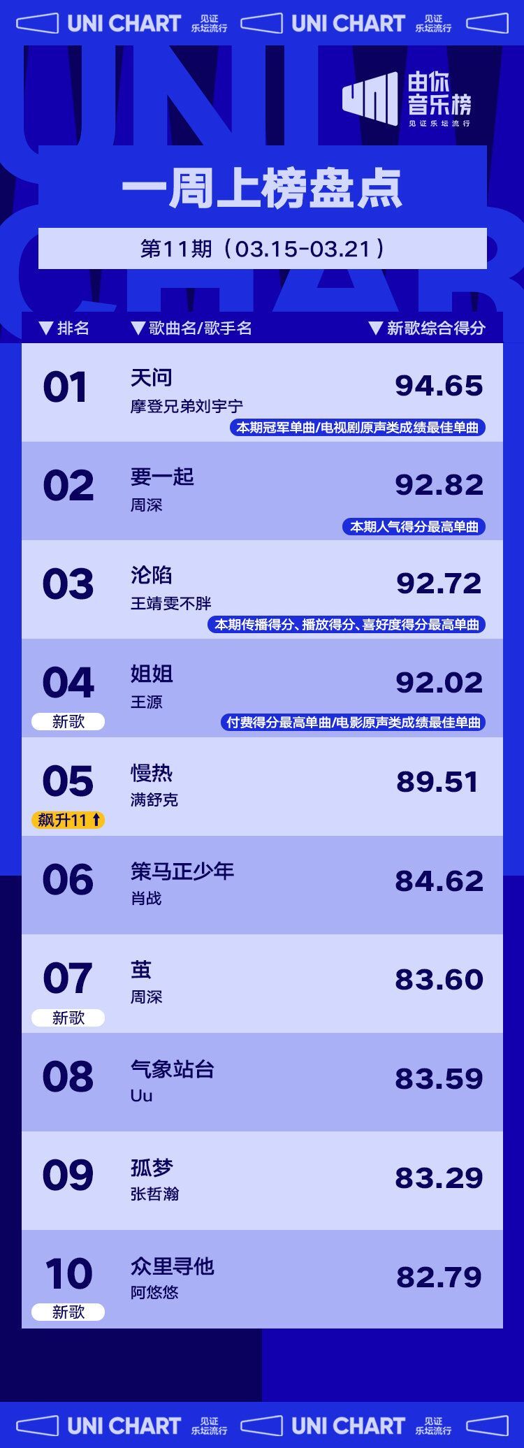 乐坛周报丨2021年第11期《由你音乐榜》一周上榜盘点