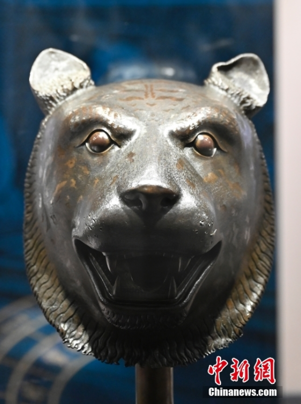 10月20日,在北京圆明园博物馆展出的虎首。由保利艺术博物馆收藏的圆明园十二兽首之牛首、虎首、猴首、猪首,时隔163年后首次重聚圆明园,并与马首一起亮相“五首重聚·故园新语”圆明园兽首铜像特别展览。