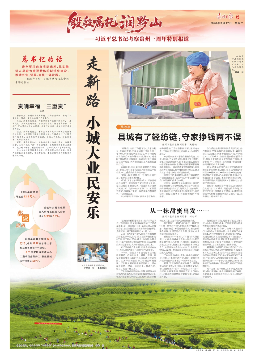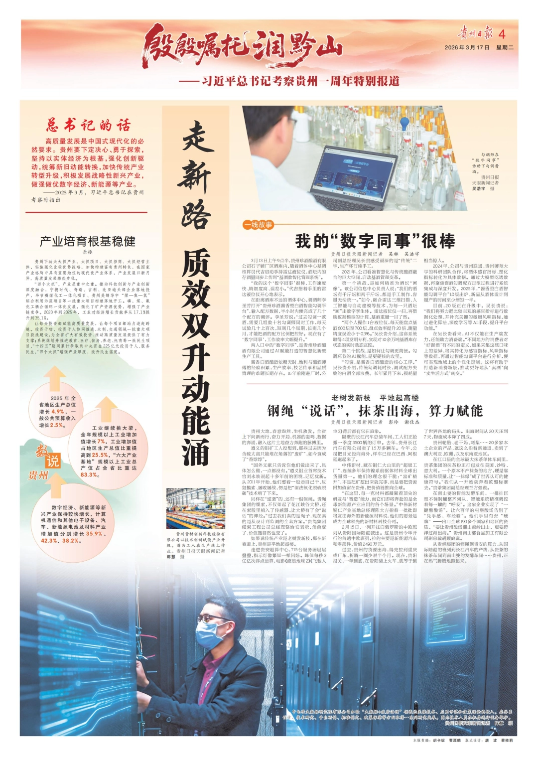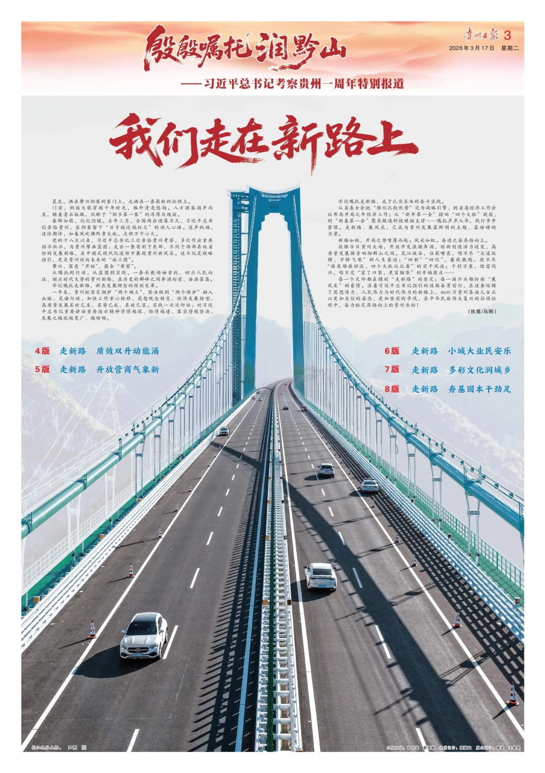 党的十八大以来,习近平总书记三次亲临贵州考察,多次作出重要指示批示,为贵州擘画蓝图:走出一条有别于东部、不同于西部其他省份的发展新路,在中国式现代化进程中展现贵州新风采。这不仅是战略指引,更是贵州迈向未来的“施工图”。
