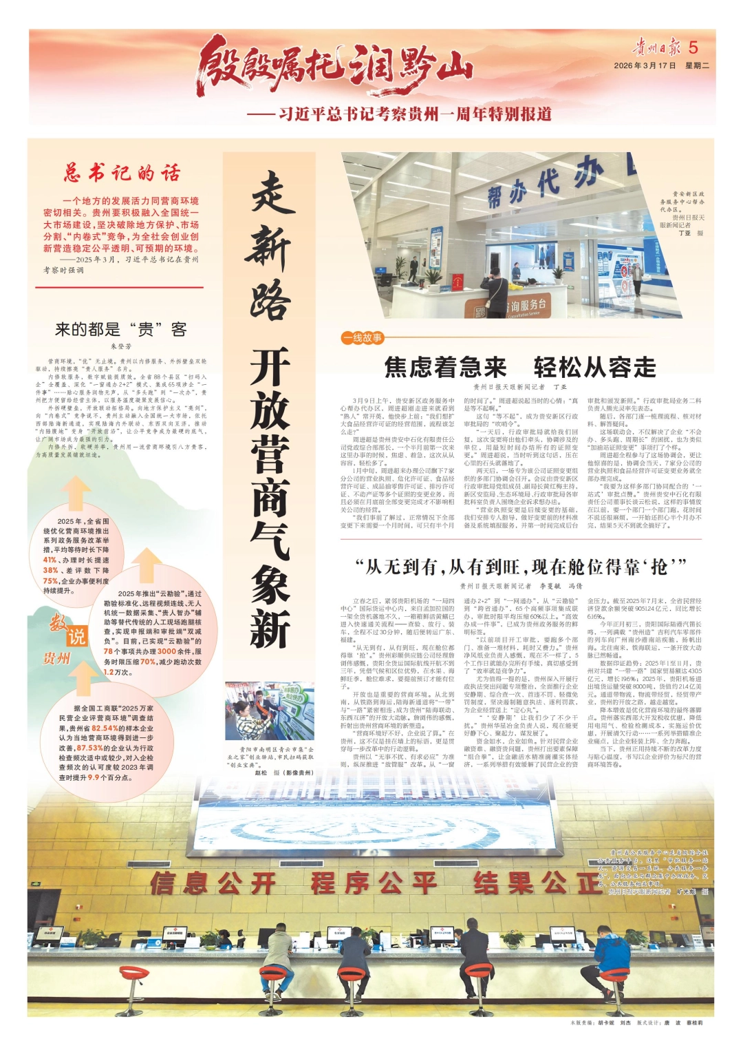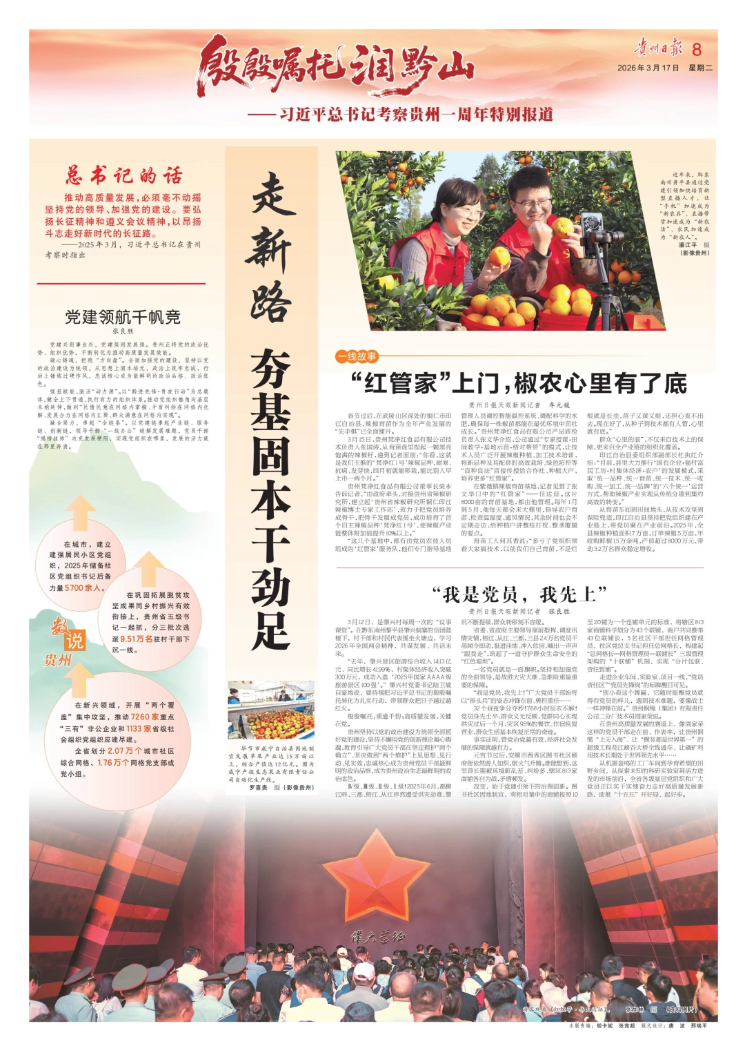 从省委全会把“强化比较优势”定为战略引擎,到省委经济工作会议布局开局之年经济工作;从“新年第一会”擂响“四个大抓”战鼓,到“新春第一会”聚焦锻造科技硬核支撑……嘱托声声入耳,践行步步紧跟。走新路、展风采,已成为贵州发展最鲜明的主题、最磅礴的力量。
