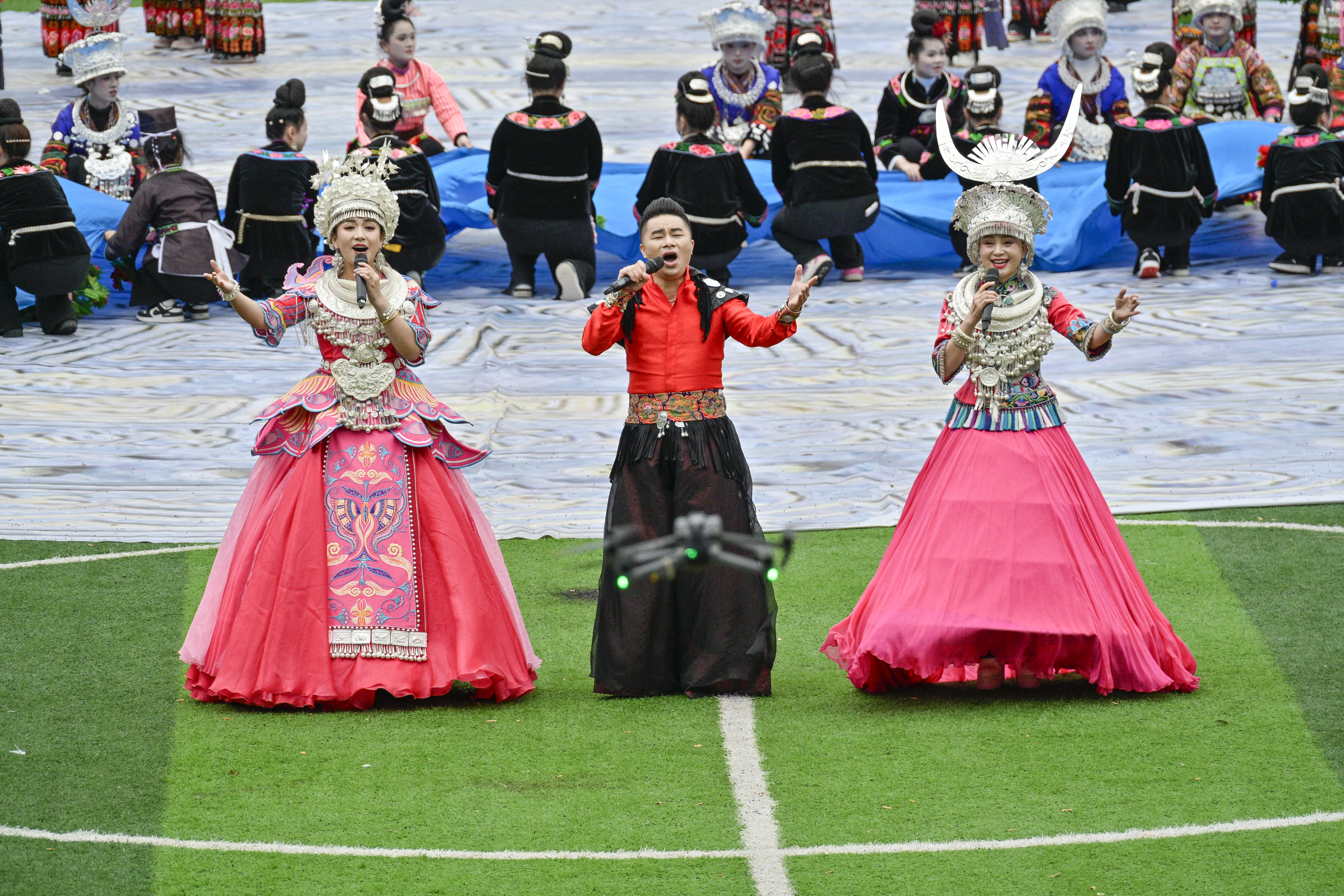 来自不同地域二十三支的芦笙队伍交织共鸣,南猛芦笙舞与方祥高排芦笙交相辉映,合奏共舞。贵州省歌舞剧院、中央歌剧院艺术家与本地歌手联袂演出,四千多名演员共跳团结舞,象征着“中华民族一家亲,同心共筑中国梦”的民族团结盛景。