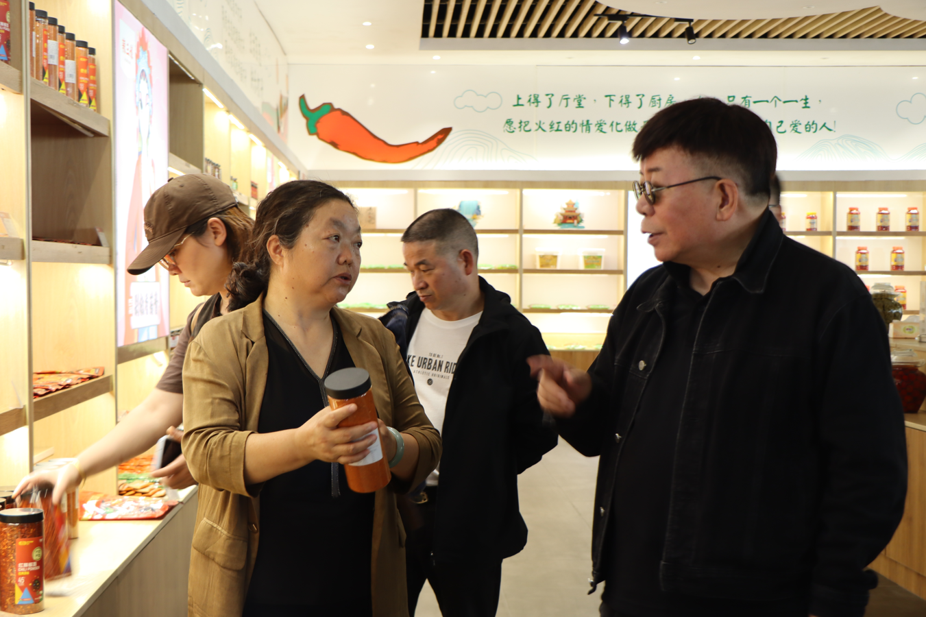 行程中,王祥夫也将目光投向当代遵义的产业实践。他实地走访虾子镇中国辣椒城、贵三红食品公司及山堡村辣椒种植加工基地,与“辣三娘”胡广芬、“梁三嬢”梁静等女性创业者交流,从辣椒的种植、加工到品牌打造,了解“遵义味道”背后的产业逻辑。