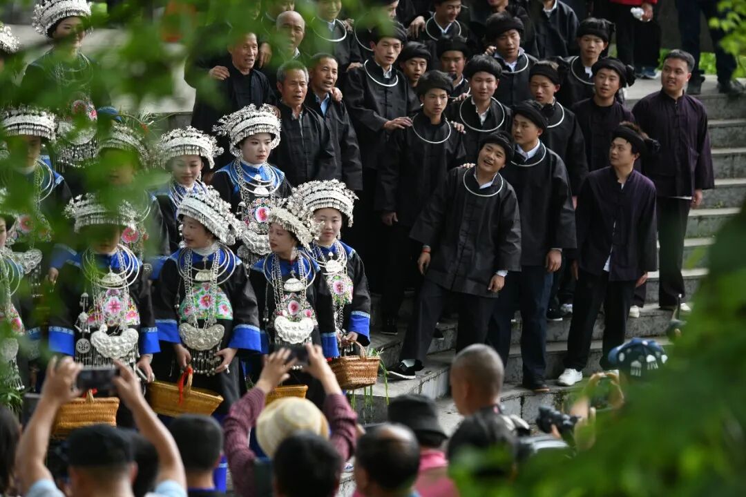 随后,最令人期待的“讨葱定情”环节在讨葱塘边开启。侗家小伙向心仪的姑娘讨要手中青葱,以此表达爱意;若姑娘有意,便将葱篮相赠。芦笙手们在一旁吹奏助兴,围观群众唱起侗族情歌为小伙鼓劲。当一对对青年男女牵手走出讨葱塘,现场爆发出阵阵欢呼。随后,人们移步莫嘎坡,山歌对唱此起彼伏,悠扬的侗歌在山谷间回荡。