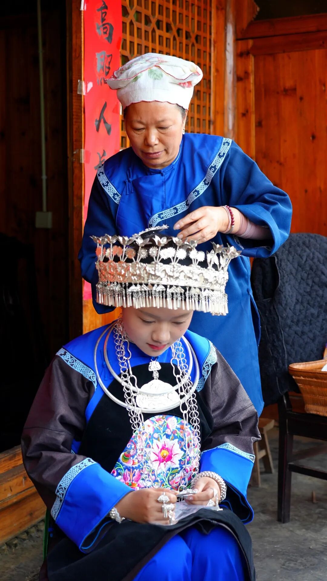 4月19日,农历三月初三,是贵州省镇远县报京“三月三”民俗文化节的正日,也是活动最高潮的一天。清晨,报京大寨石板街两旁的吊脚楼上,父母正为女儿精心梳妆。银饰叮当、盛装华美,希望在这个古老的情人节里遇见意中人。