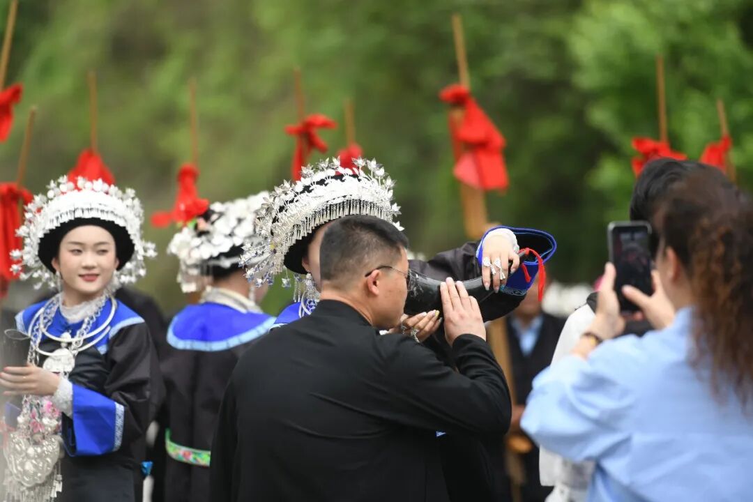 “来三月三就为了看这场原生态的民俗活动,感受独特的侗家文化,刚才长桌宴上喝了牛角杯的米酒,听了敬酒歌,这种沉浸式的文化体验,在景区里是花钱也买不到的。明天我还要去看稻田拔河和抓鱼,这才是真正的乡土中国。”甘肃游客王至强说。