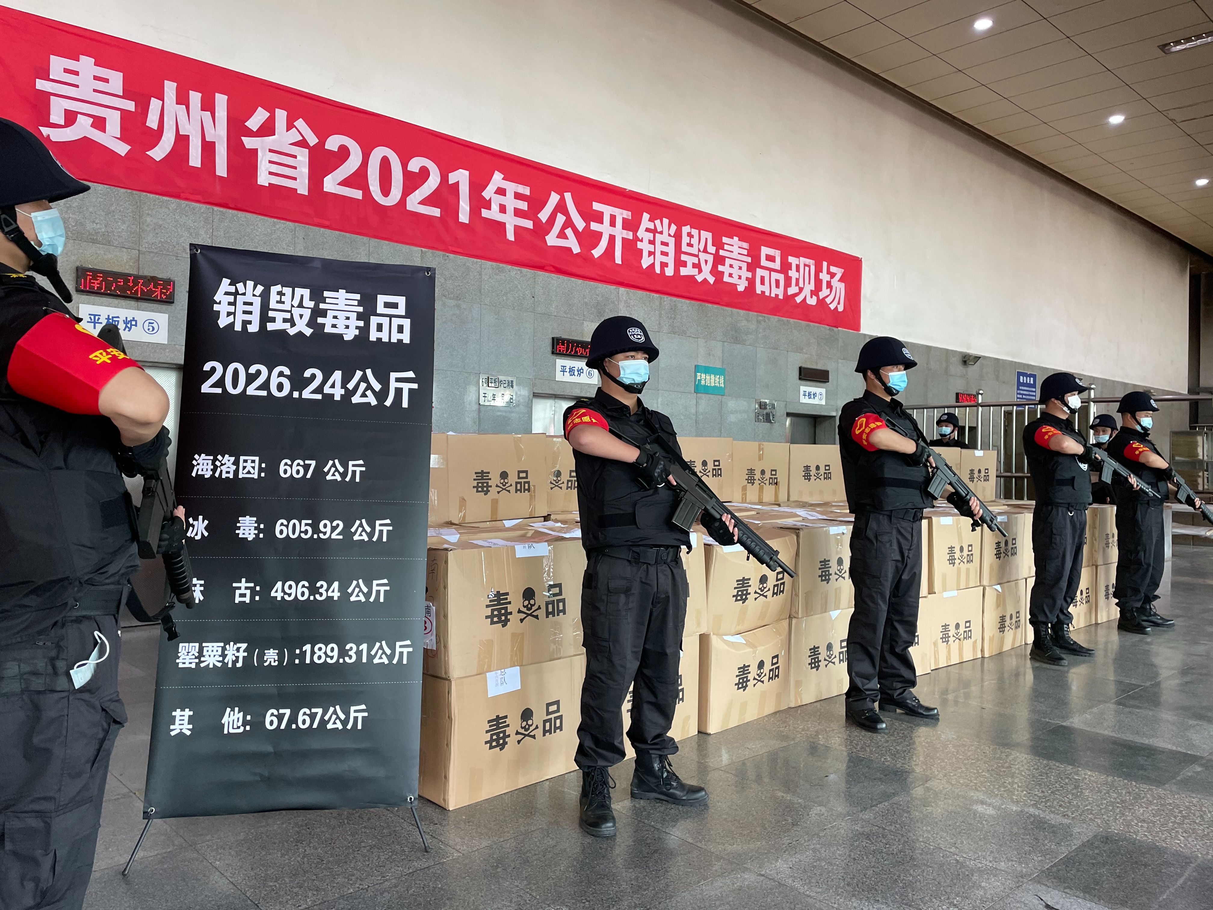 6月18日,为进一步昭示贵州省委、省政府禁绝毒品的决心,宣传禁毒“大扫除”取得的成果,更好地营造浓厚的全民禁毒氛围,增强禁毒预防宣传教育效果,激发广大人民群众参与禁毒工作的积极性,贵州省公安厅决定公开集中销毁近年来全省公安机关缴获的各类毒品2026公斤,其中,海洛因667余公斤,合成毒品(冰毒、麻古、氯胺酮等)1118公斤,鸦片14公斤,罂粟籽(壳)189公斤,其他毒品37公斤。