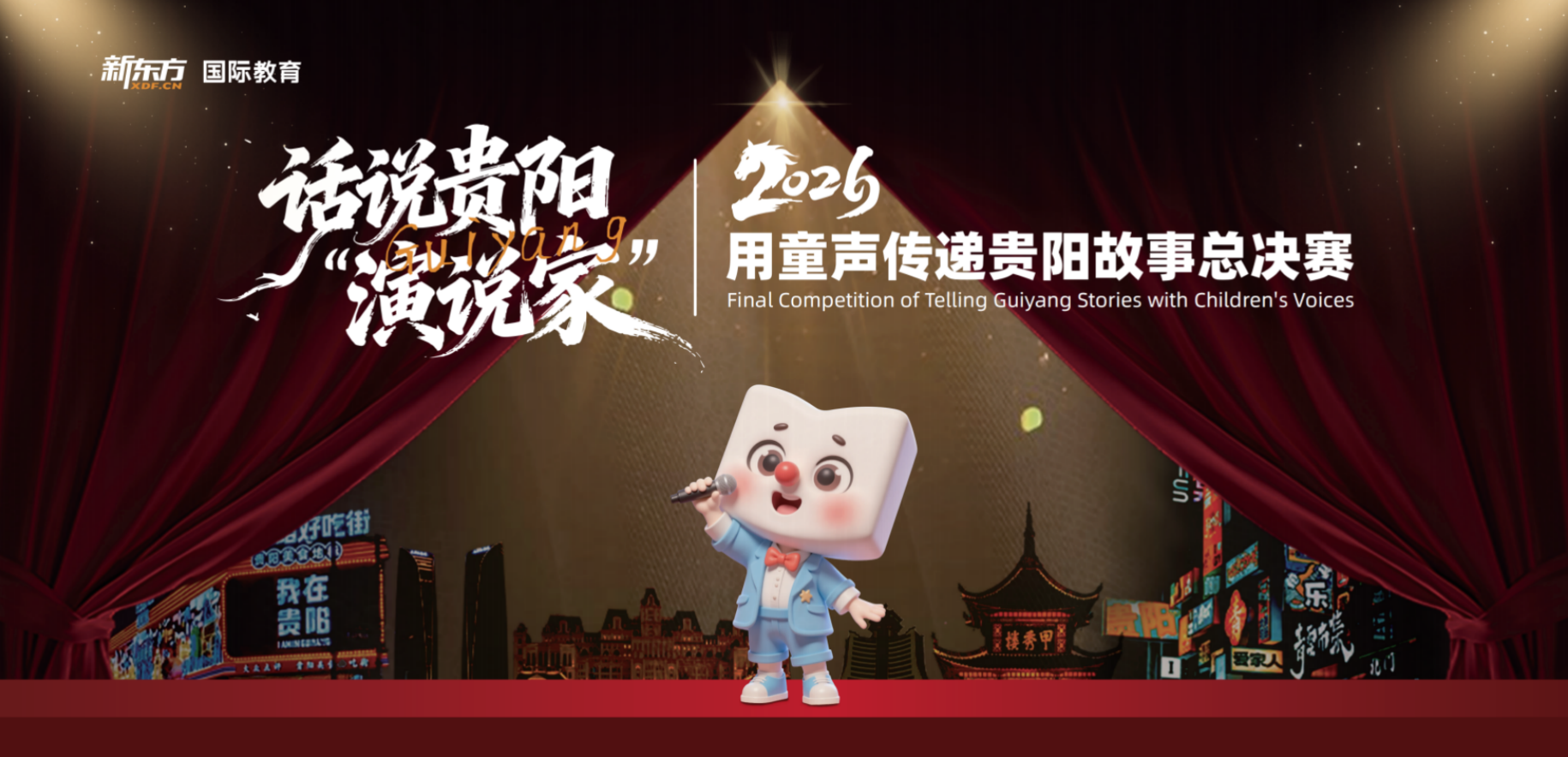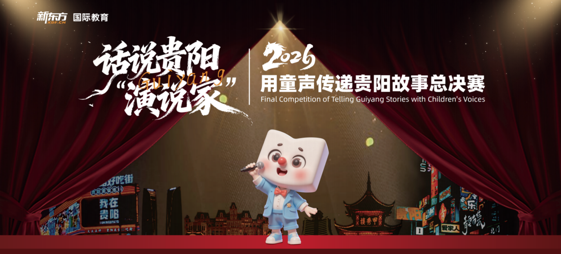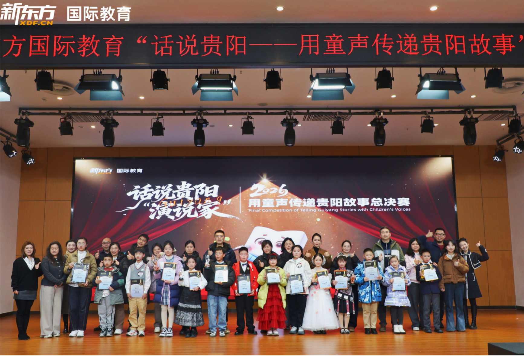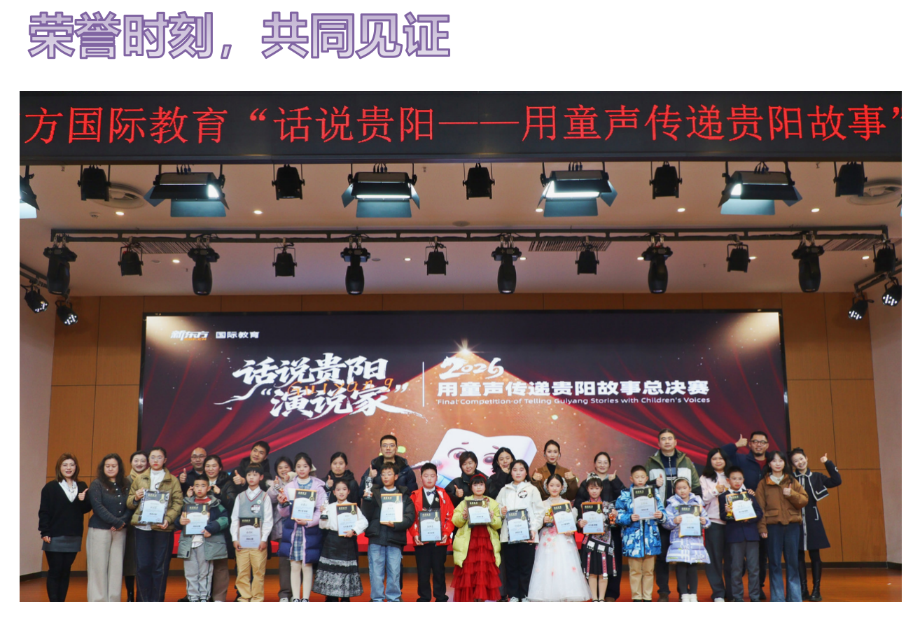 2026年1月10日,当最后一个演讲收尾的掌声落下,当奖杯与证书的光芒照亮小选手们的笑脸——新东方国际教育×贵州电视台文体旅“话说贵阳”英语演讲比赛决赛在多彩贵州风景眼文创园圆满落幕!本次决赛由动静贵州全程直播,让全网观众共同见证了这场精彩对决。从初赛的勇敢开口,到复赛的从容进阶,再到决赛的巅峰对决,小选手们在家长的全程陪伴下,用英语为家乡发声,用热爱书写成长,为这场专属贵阳少年的英语盛宴,画上了圆满的句号。