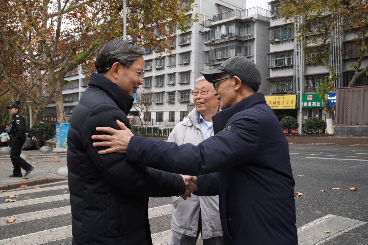 在学校党委书记周静、校长张霞的陪同下,周志华院士缓缓走过熟悉的校园。操场、楼道、梧桐树下……每一处都承载着青春的印记。他不时驻足,抚摸斑驳的墙砖,仰望参天的树木,仿佛在聆听岁月深处的回响。