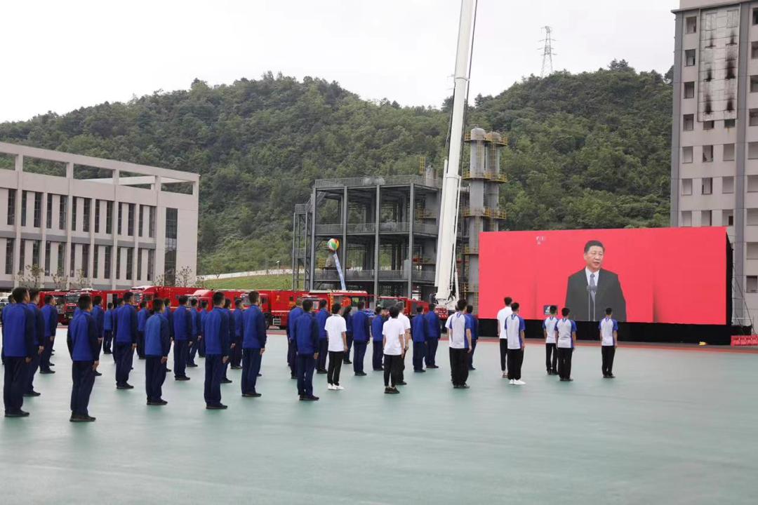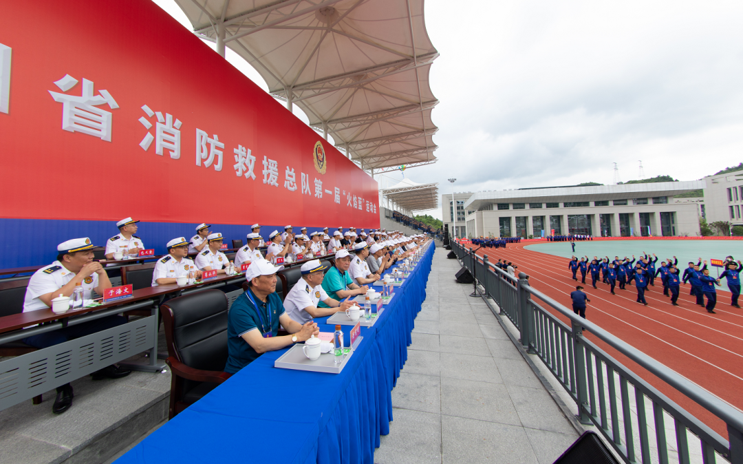 6月24日,贵州省消防救援总队第一届“火焰蓝”运动会开幕式在新落成的总队战勤保障和综合应急救援训练基地隆重举行,总队李勇总队长、刘延华政委、总队全体党委班子成员和历任总队副职以上老领导、各支队主官出席开幕式并观看比赛。