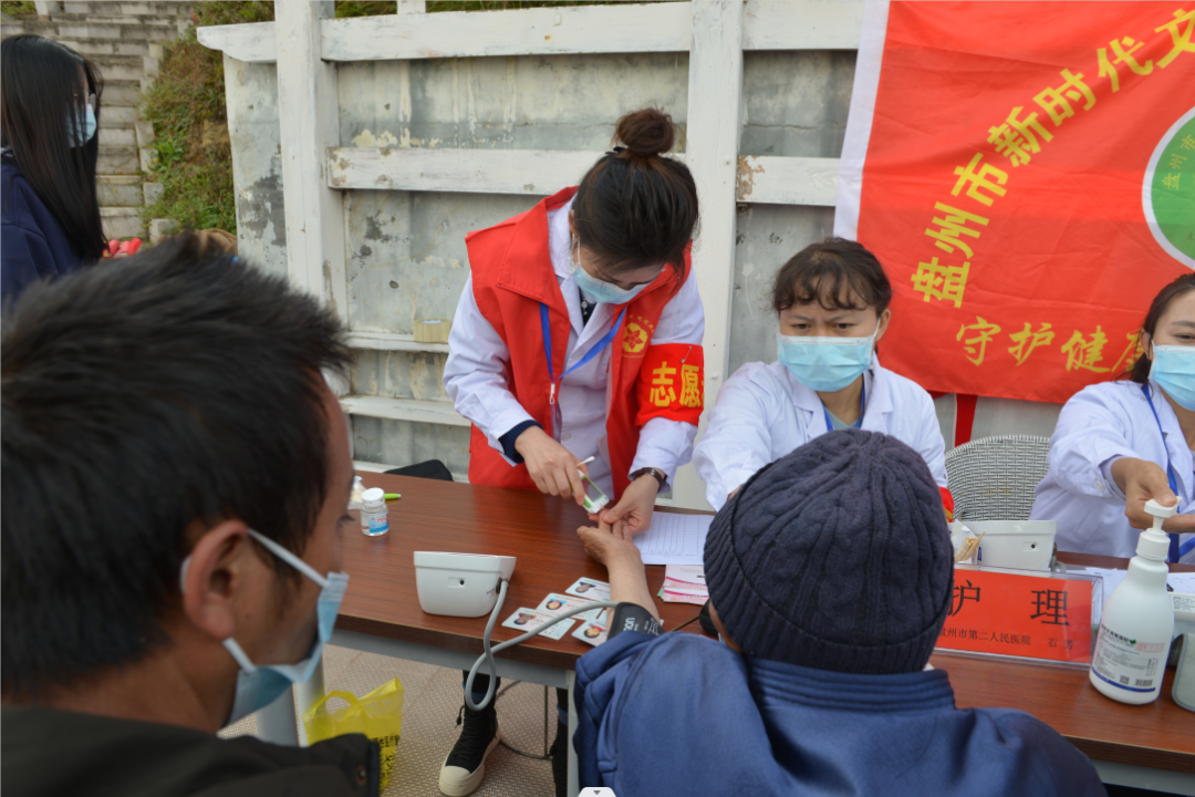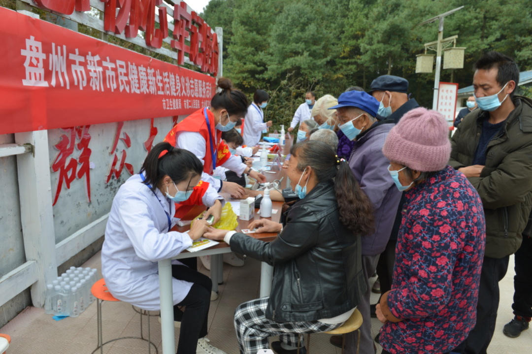 11月10日,盘州市卫生健康局联合市第二人民医院、大山镇卫生院到大山镇七指峰居委会举行新市民健康新生活健身义诊志愿服务活动,为易地扶贫搬迁群众普及健康知识、提供医疗健身义诊服务。