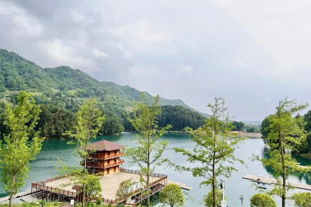 与其说卧龙湖度假酒店是间酒店,还不如说是个疗愈身心的地方,宁静的湖水静静的躺在山脚和酒店一侧,湖面在微风的吹拂下泛起丝丝涟漪,湖中的圆形小岛将湖分成了几个部分,一部分安静祥和,一部分灵动热闹,安静祥和的流淌的湖水,灵动热闹的是岛上水鸟的啾鸣儿,这一静一动谱写了一幅自然和谐的画卷。