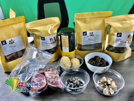西南大学第二十五届研支团巫山分队在巫山县农民工返乡创业园直播间开展“乡约巫山”直播带货活动。图为巫山县特色农产品。西南大学研支团供图
