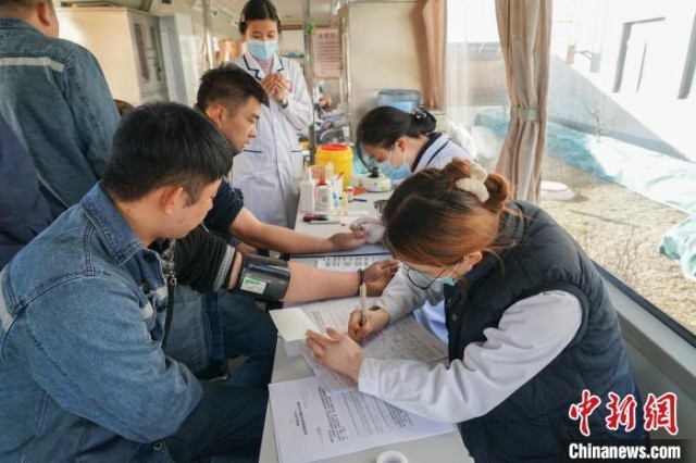 图为青海百河铝业有限责任公司职工进行血压测量、血型检测。马铭言 摄