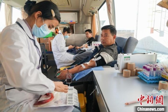 图为青海百河铝业有限责任公司职工进行爱心献血。马铭言 摄