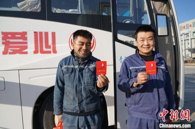 图为青海百河铝业有限责任公司职工展示自己获得的无偿献血证。马铭言 摄